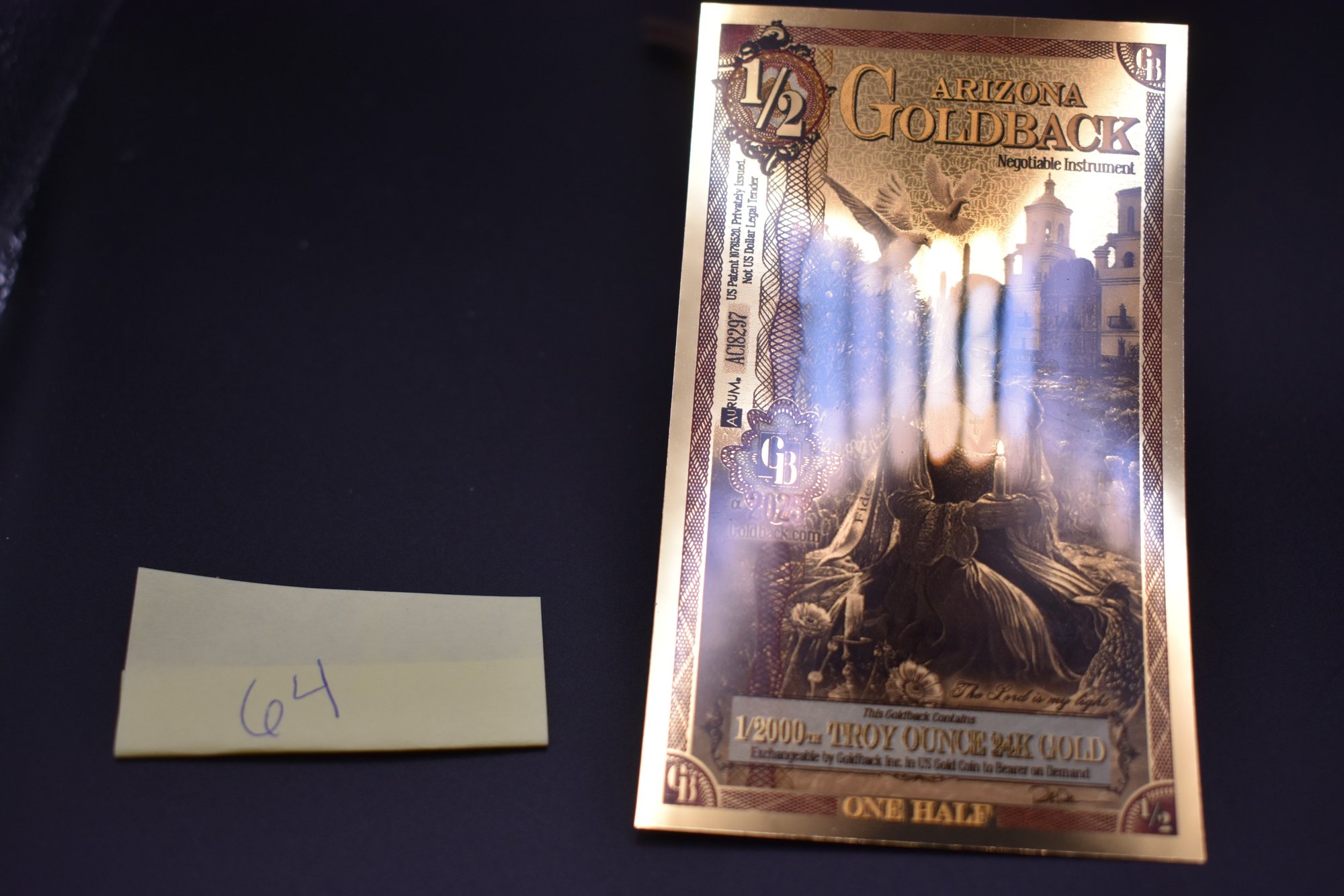 1/2 Arizona GoldBack 1/2000th Troy Ounce 24K Gold