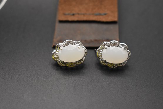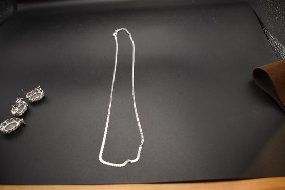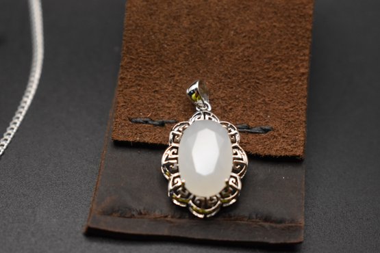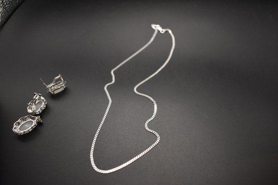 18 Inch .925 Sterling Silver Necklace With Pendent and Matching Earrings With Fake opals