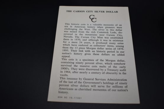 1883 CC Uncirculated Silver Morgan With COA NGC Graded MS 62