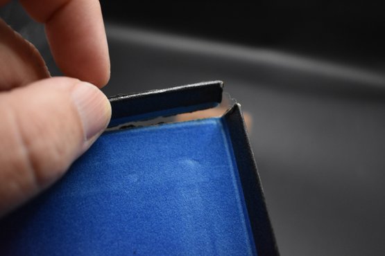 Box hinge is broken and box has some damage.