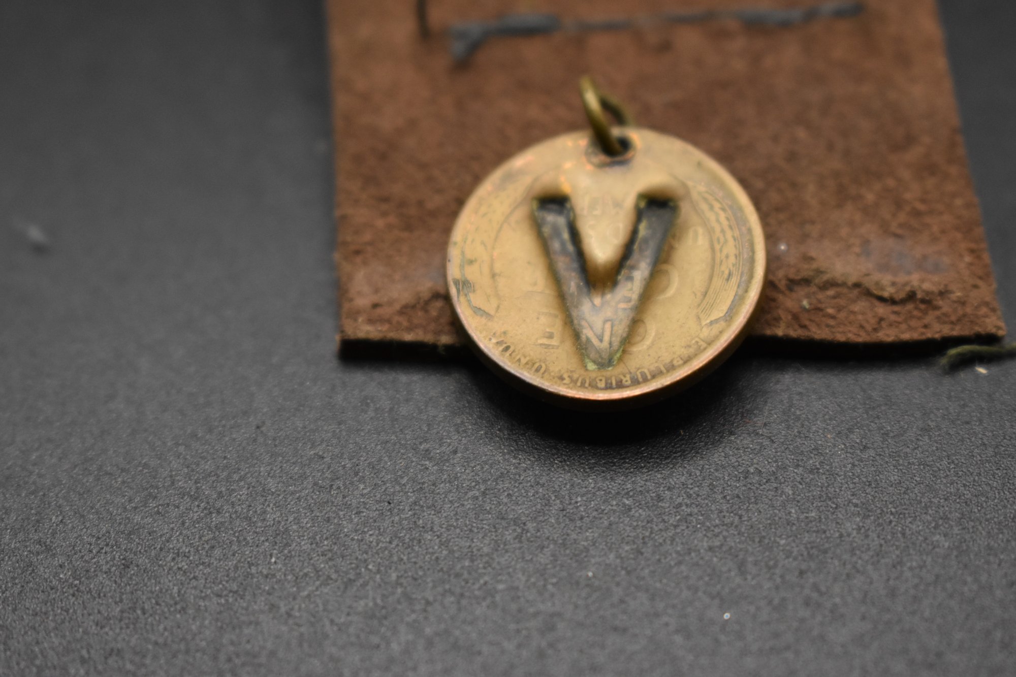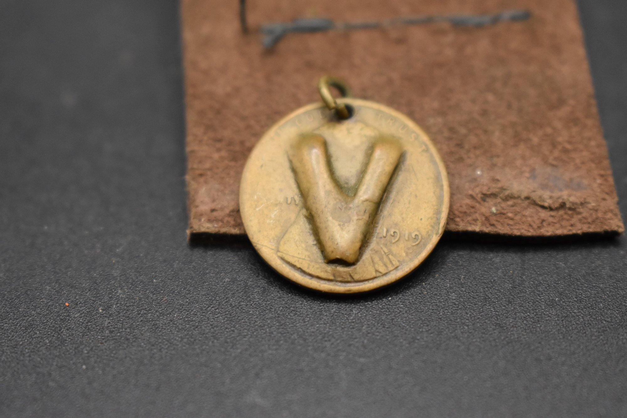 1919 Lincoln Wheat Penny Stamped into a necklace Charm for Victory