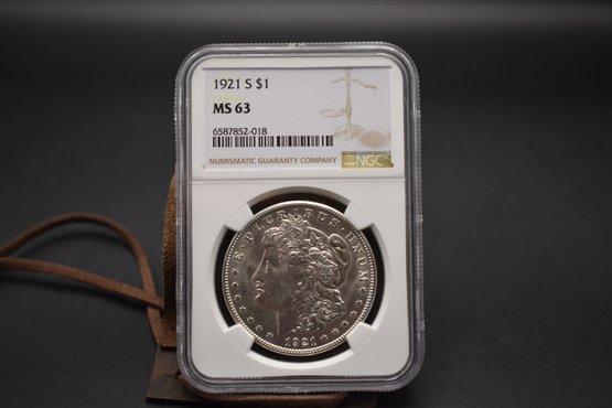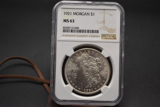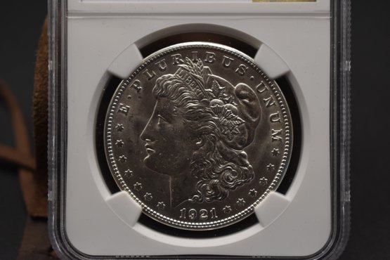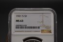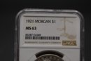 1921 Silver Morgan 3 Coin Set 1921 P, 1921 D, 1921 S All NGC Graded MS 63 With Case %90 Silver