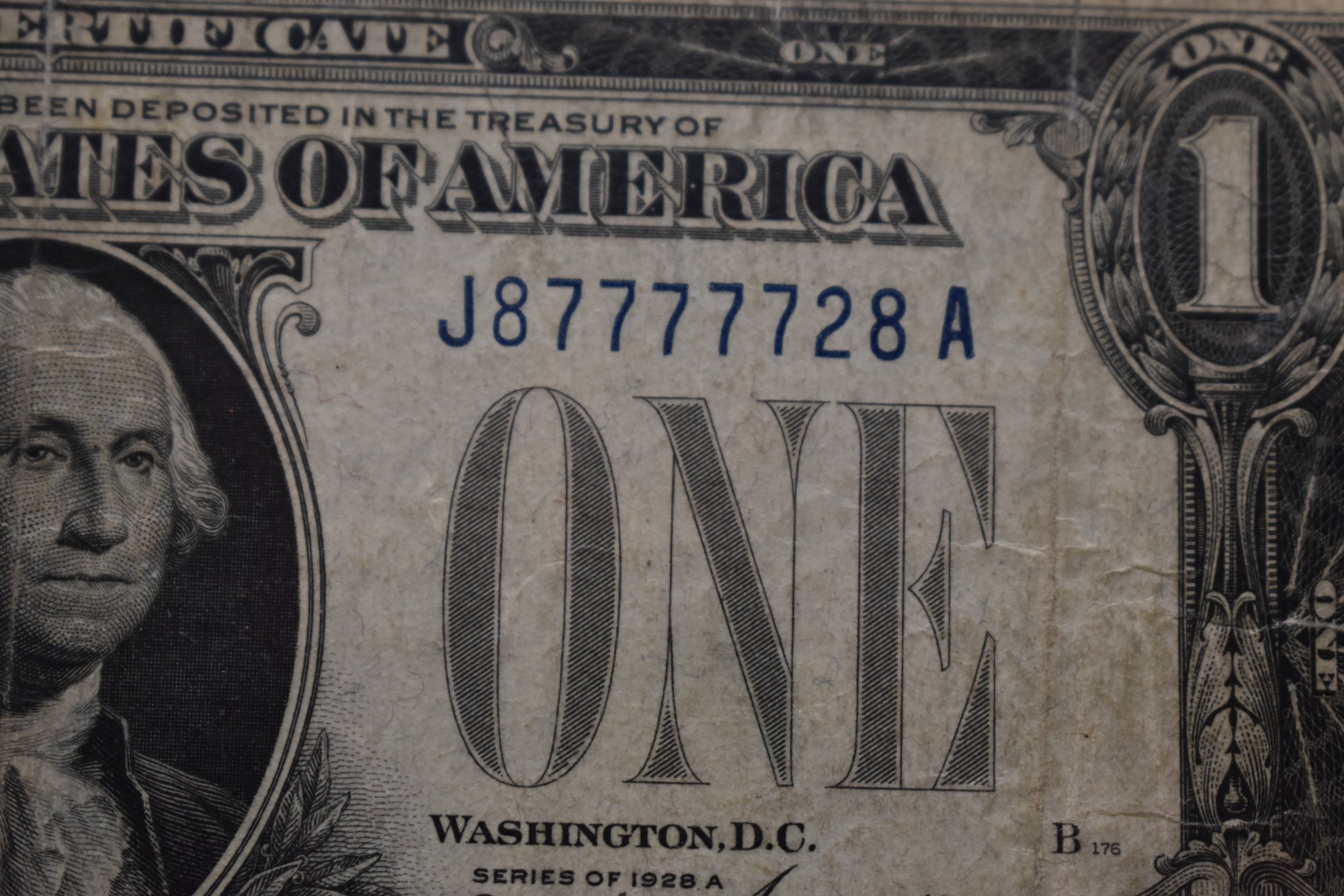 1928 A 1 dollar Silver Certificate note Great Serial Number