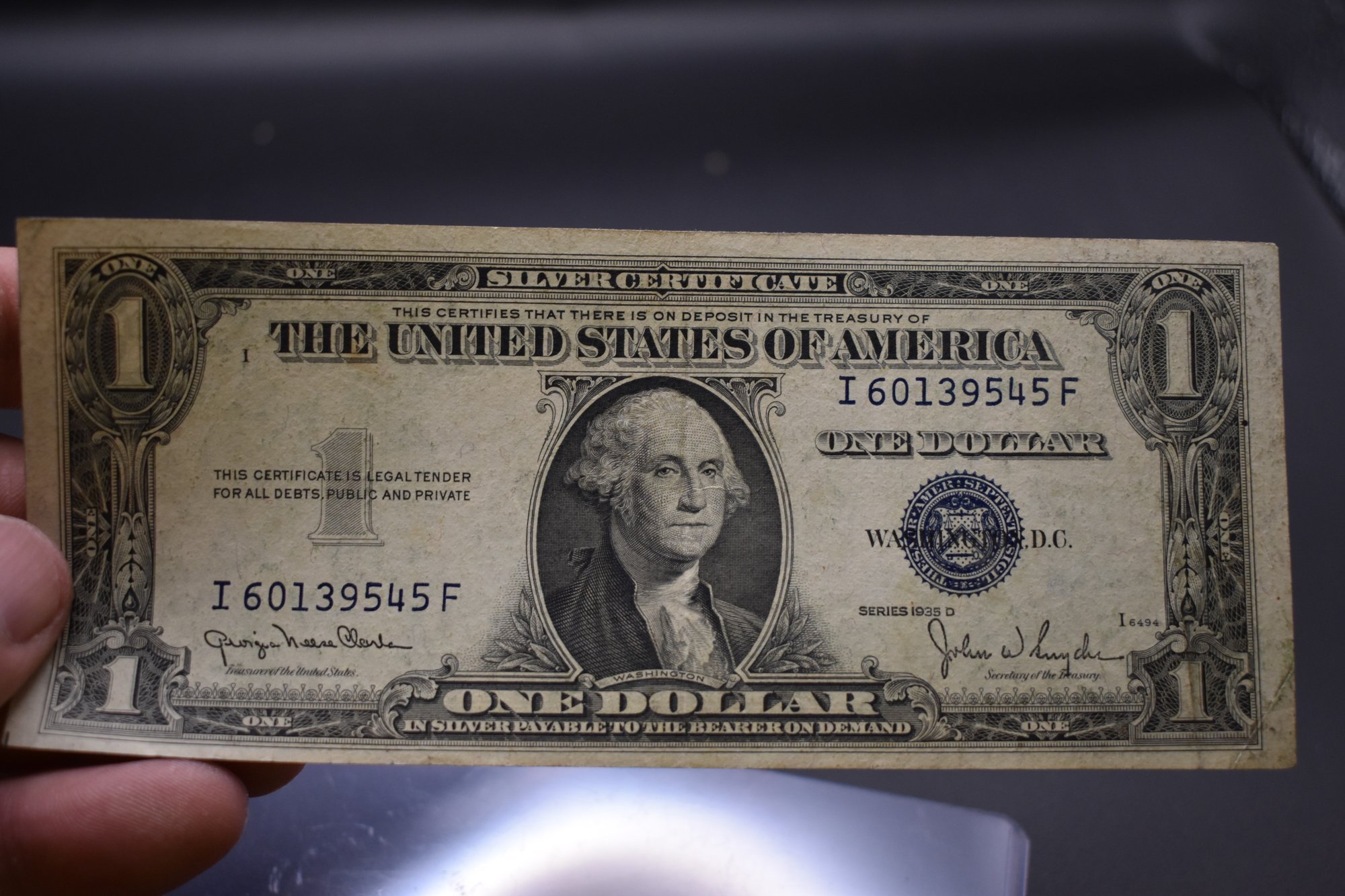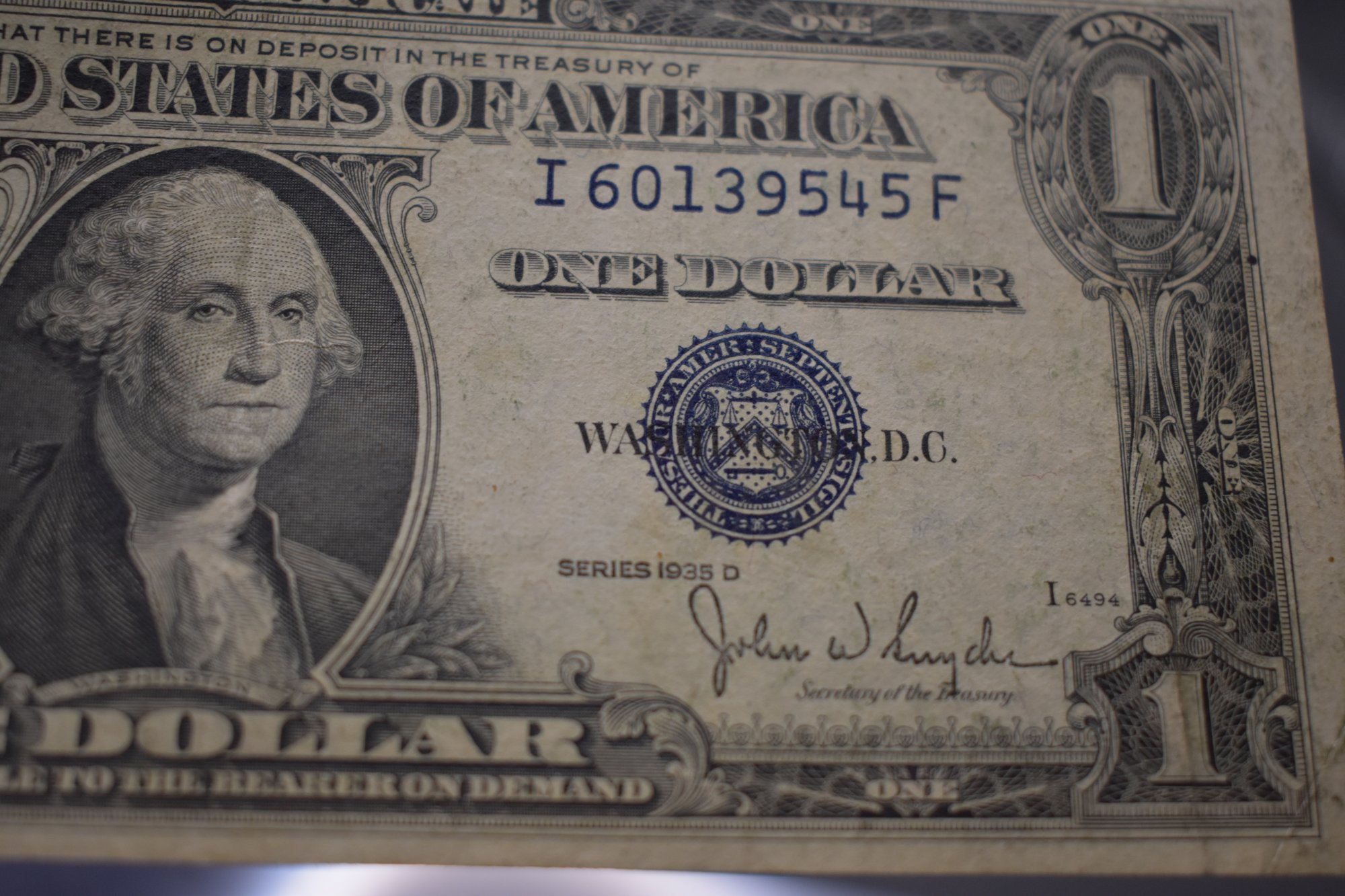 1935 D One Dollar Silver Certificate Note Almost Uncirculated
