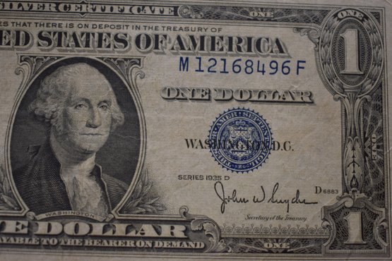 1935 D One Dollar Silver Certificate Note Almost Uncirculated