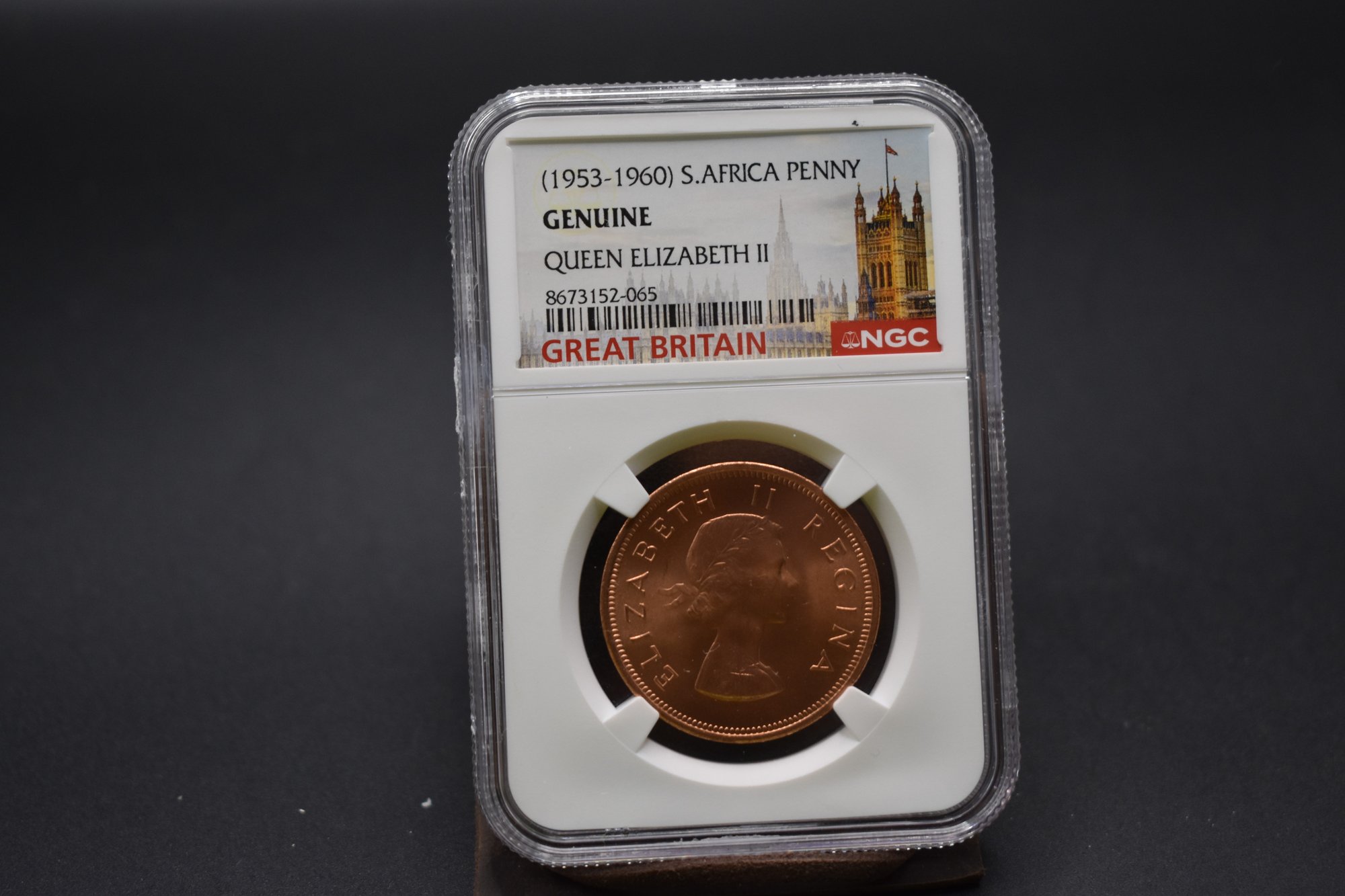 1960 South Africa Penny NGC Slab Queen Elizabeth 2 Coin