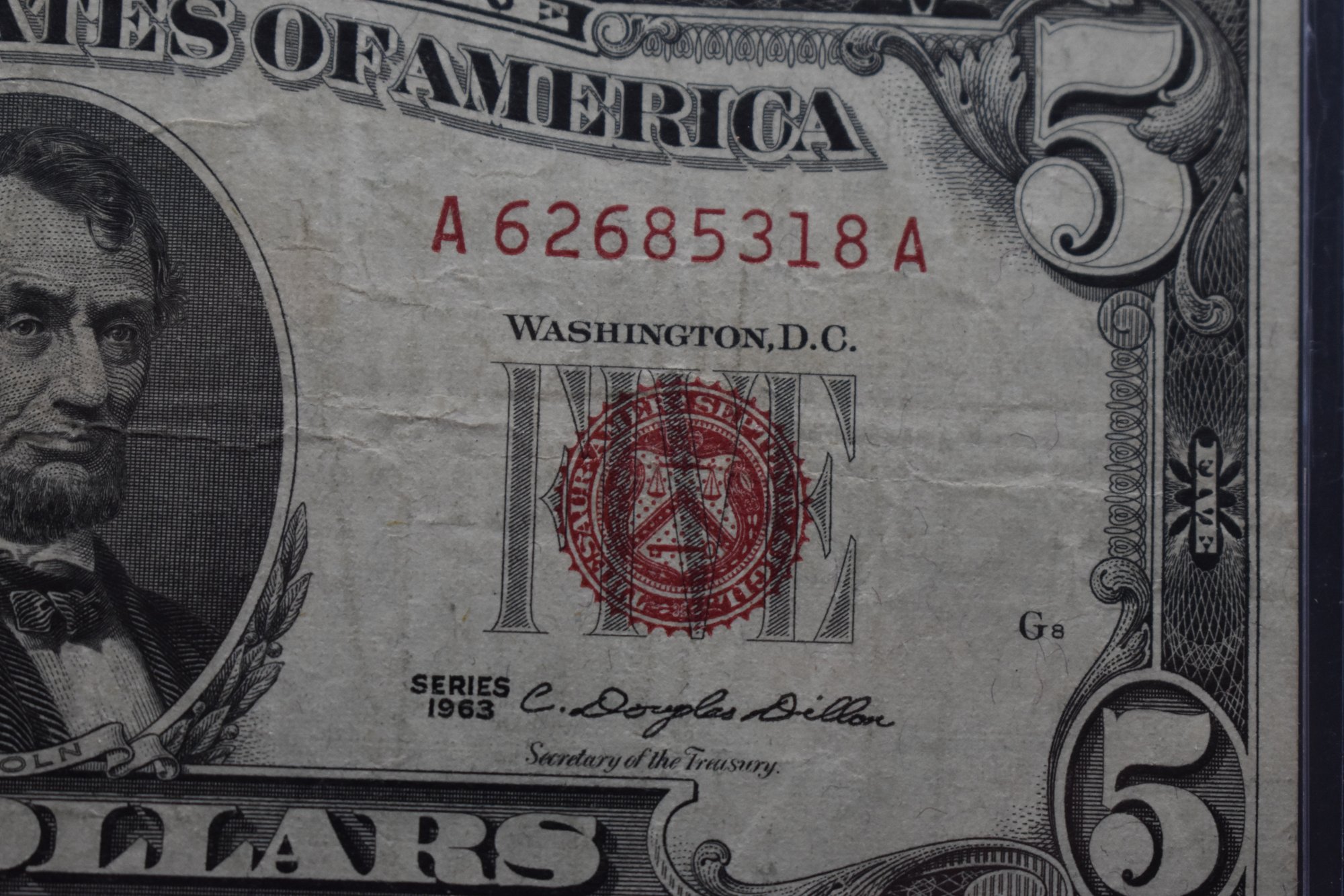 1963 5 Dollar Bill Red Seal In Good Condition