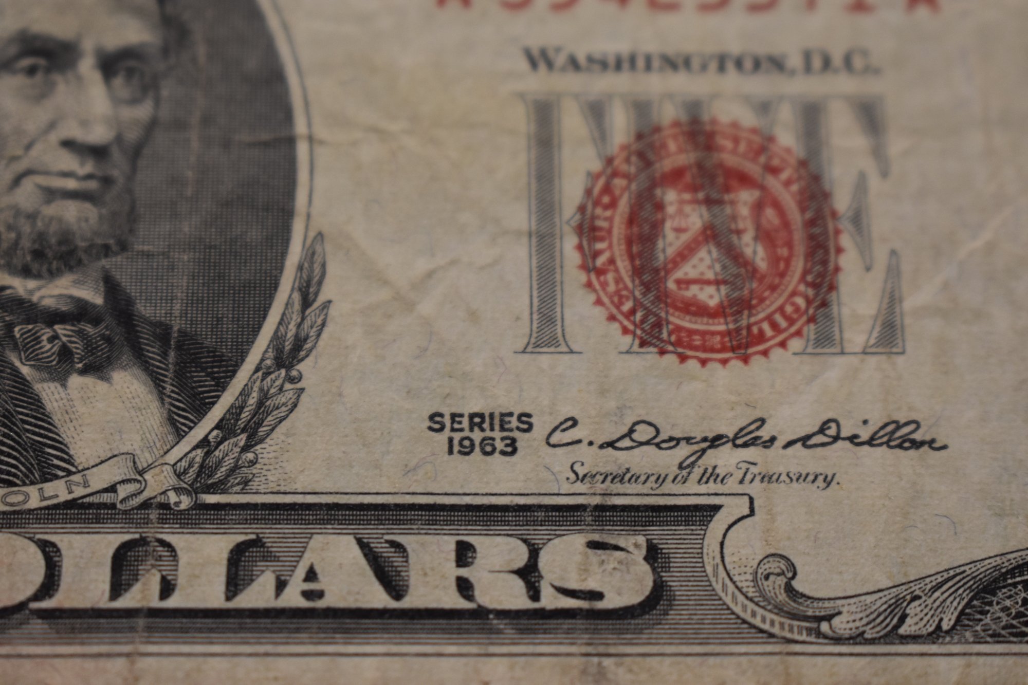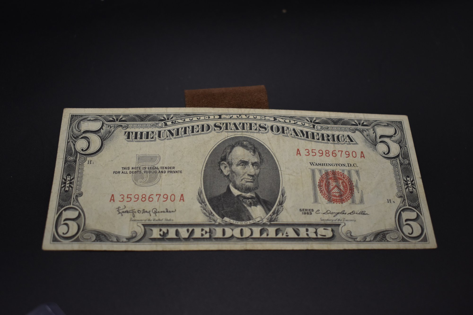 1963 5 Dollar Bill Red Seal In Very Good Condition
