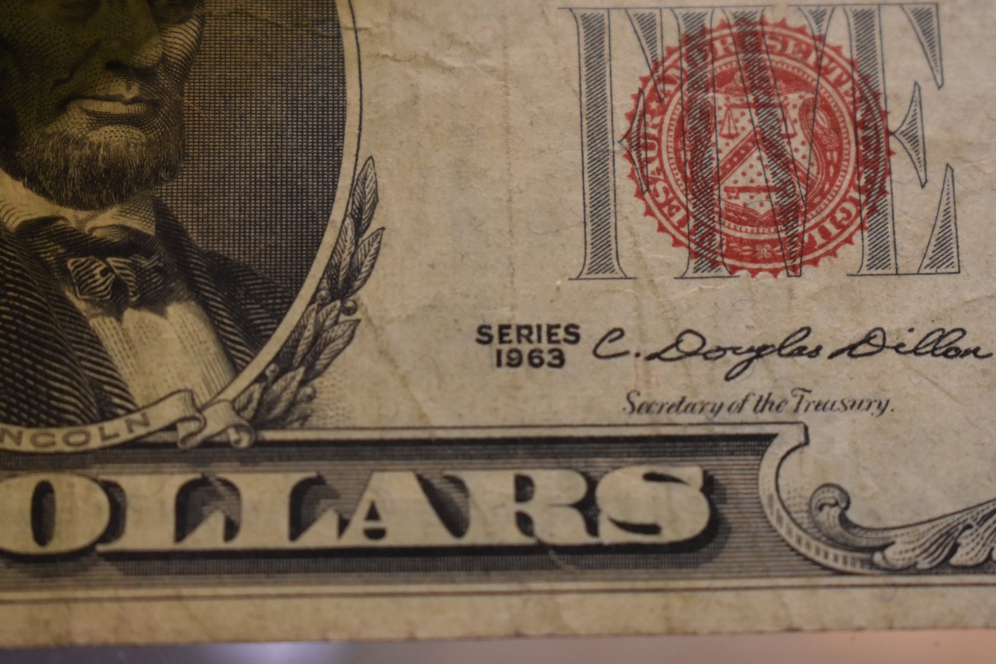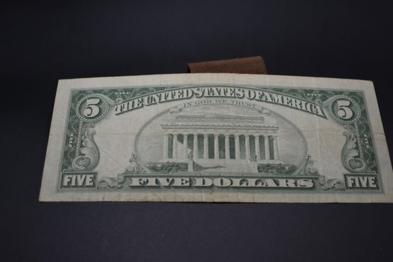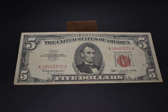 1963 5 Dollar Bill Red Seal In Very Good Condition