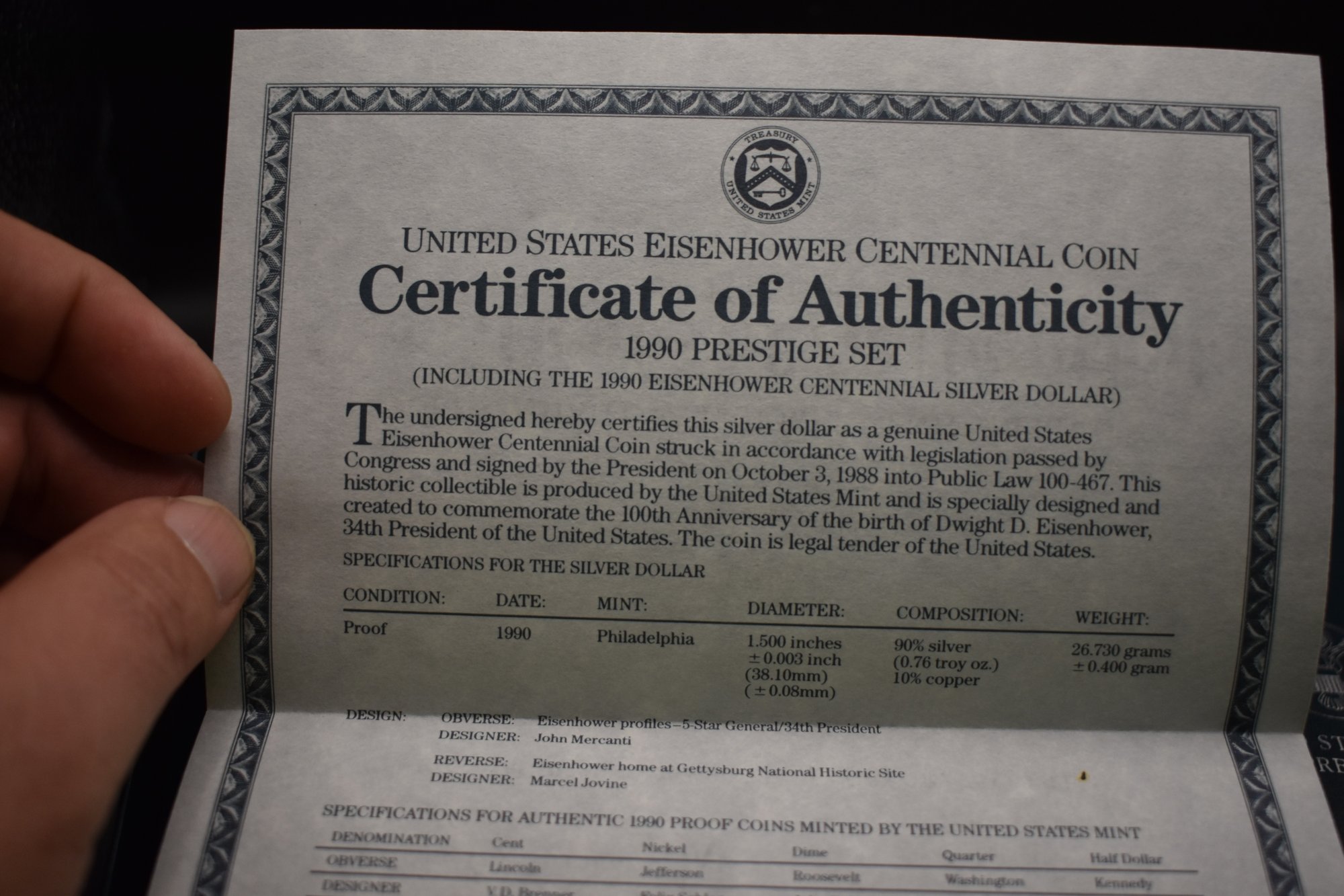 1990 US Mint Prestige Coin Set 6 Coin Set