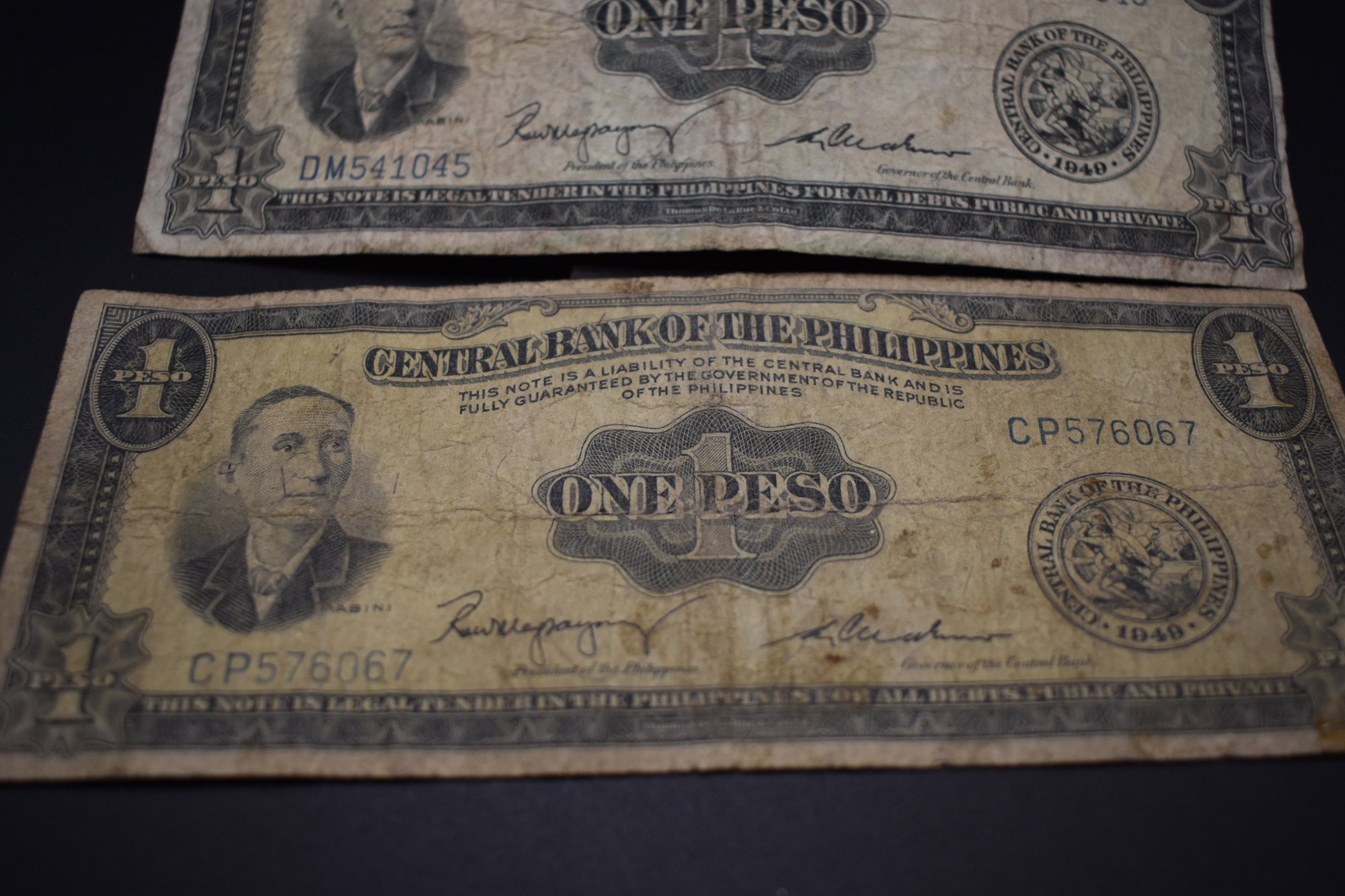 2 1949 Philippines One Peso Bills