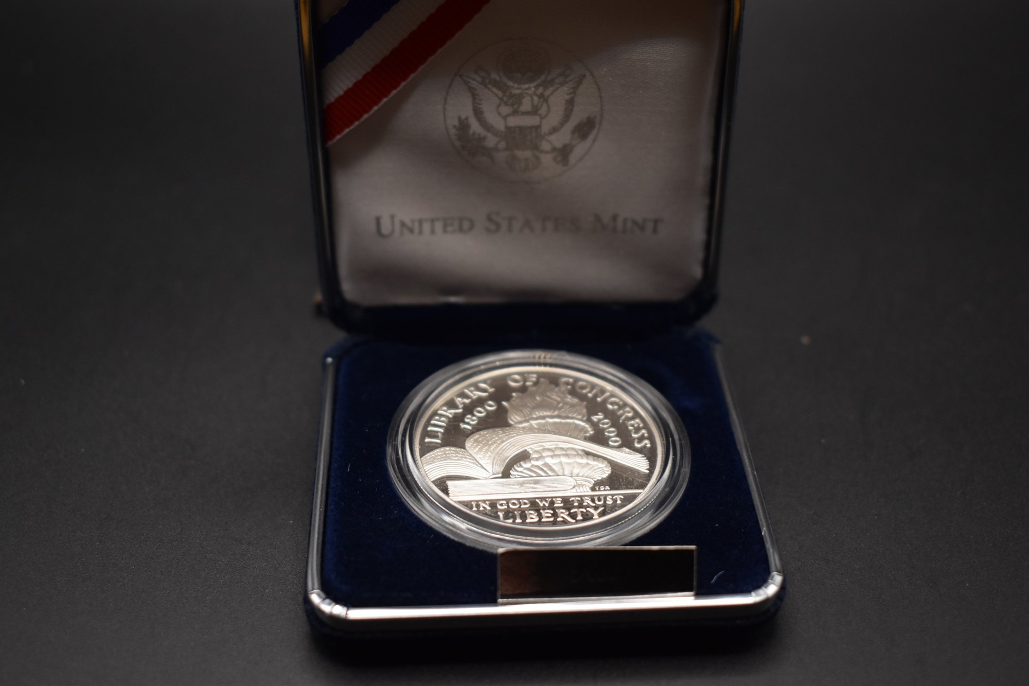 2000 Library Of Congress Silver Proof Dollar coin With COA and Case