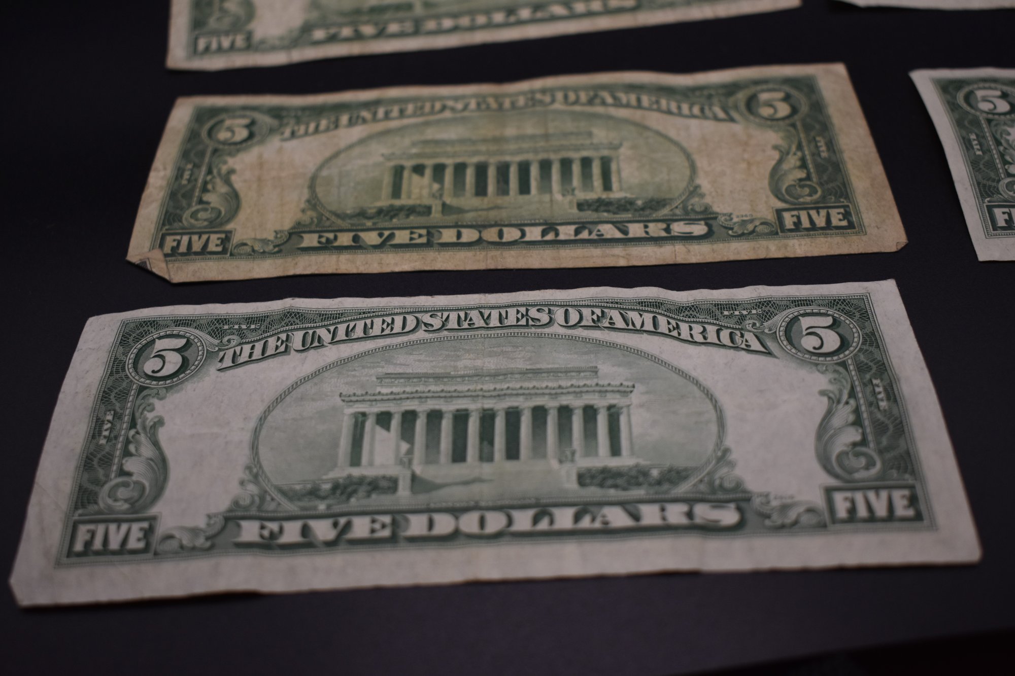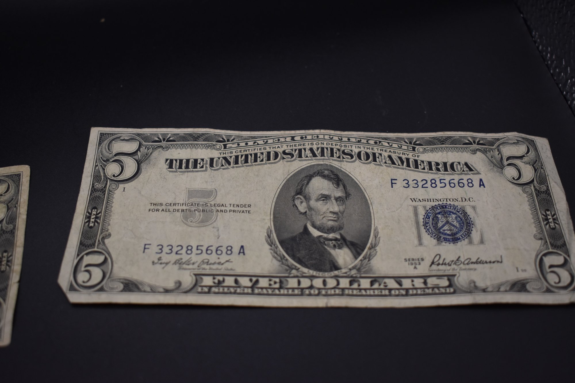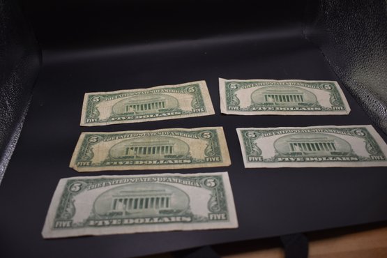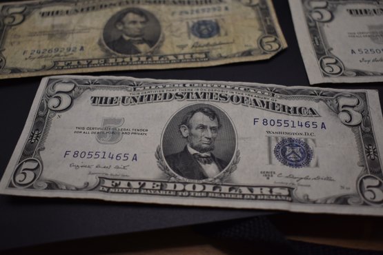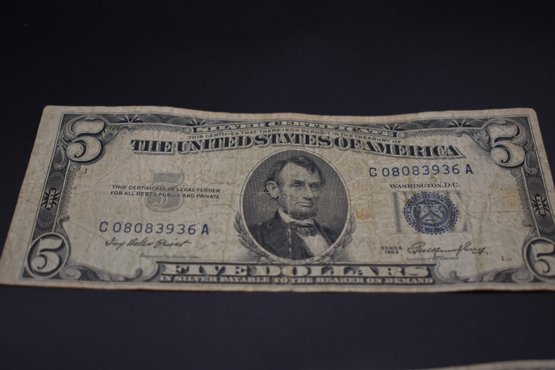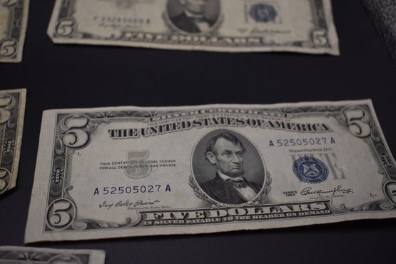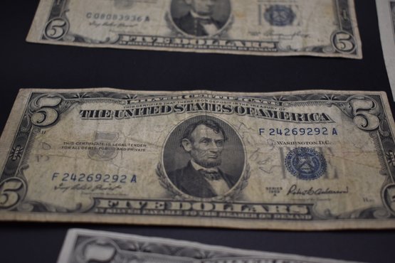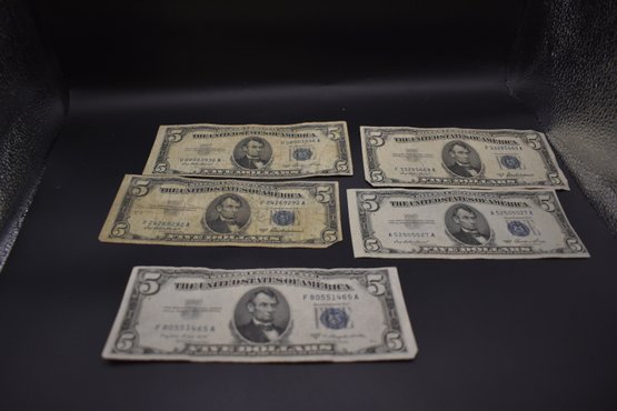 5 Pack of 5 Dollar Silver Certificate Notes Various Conditions