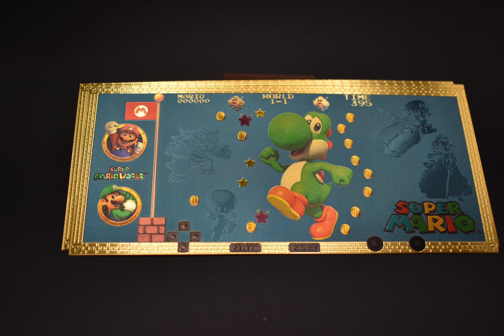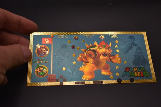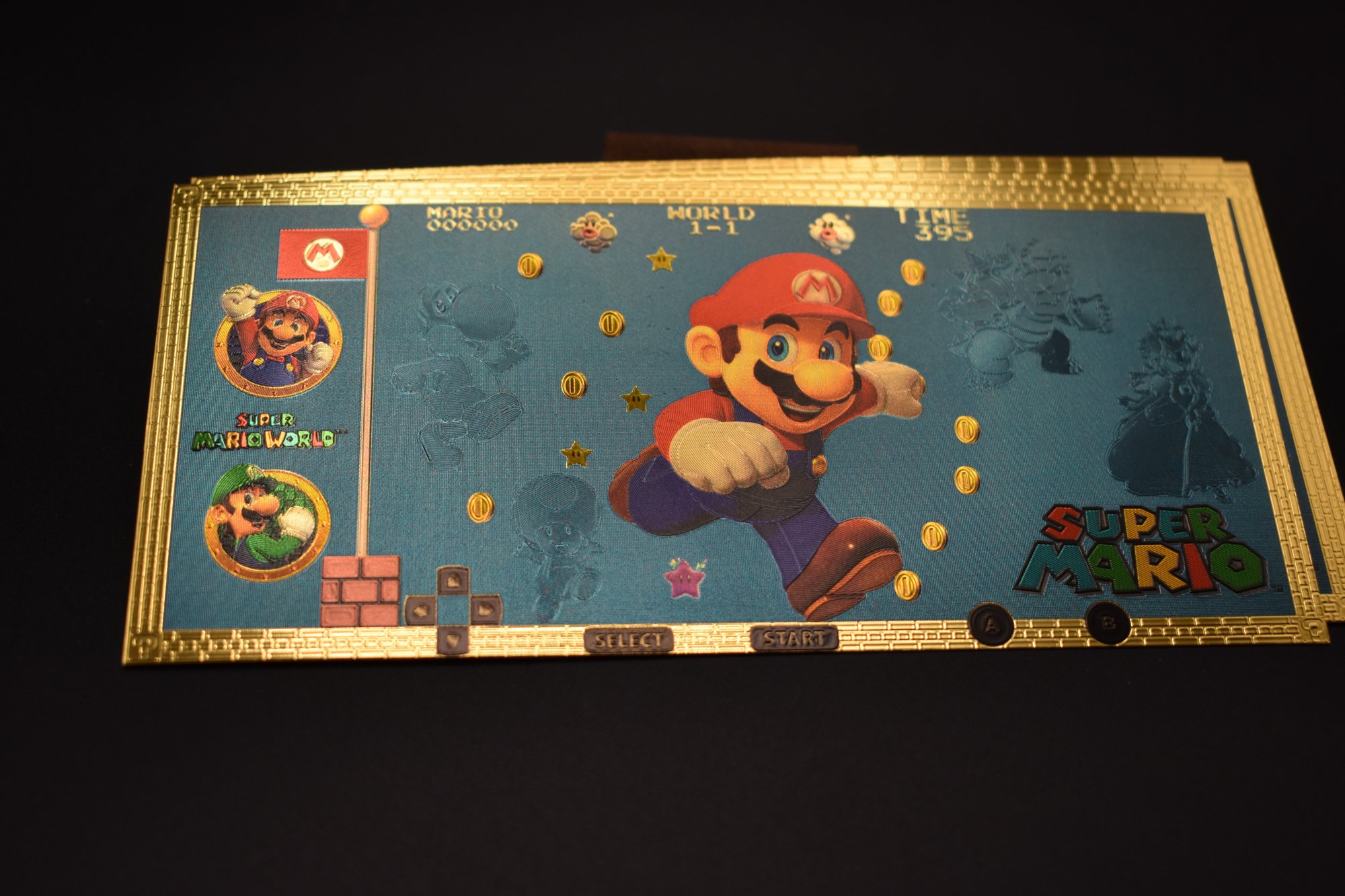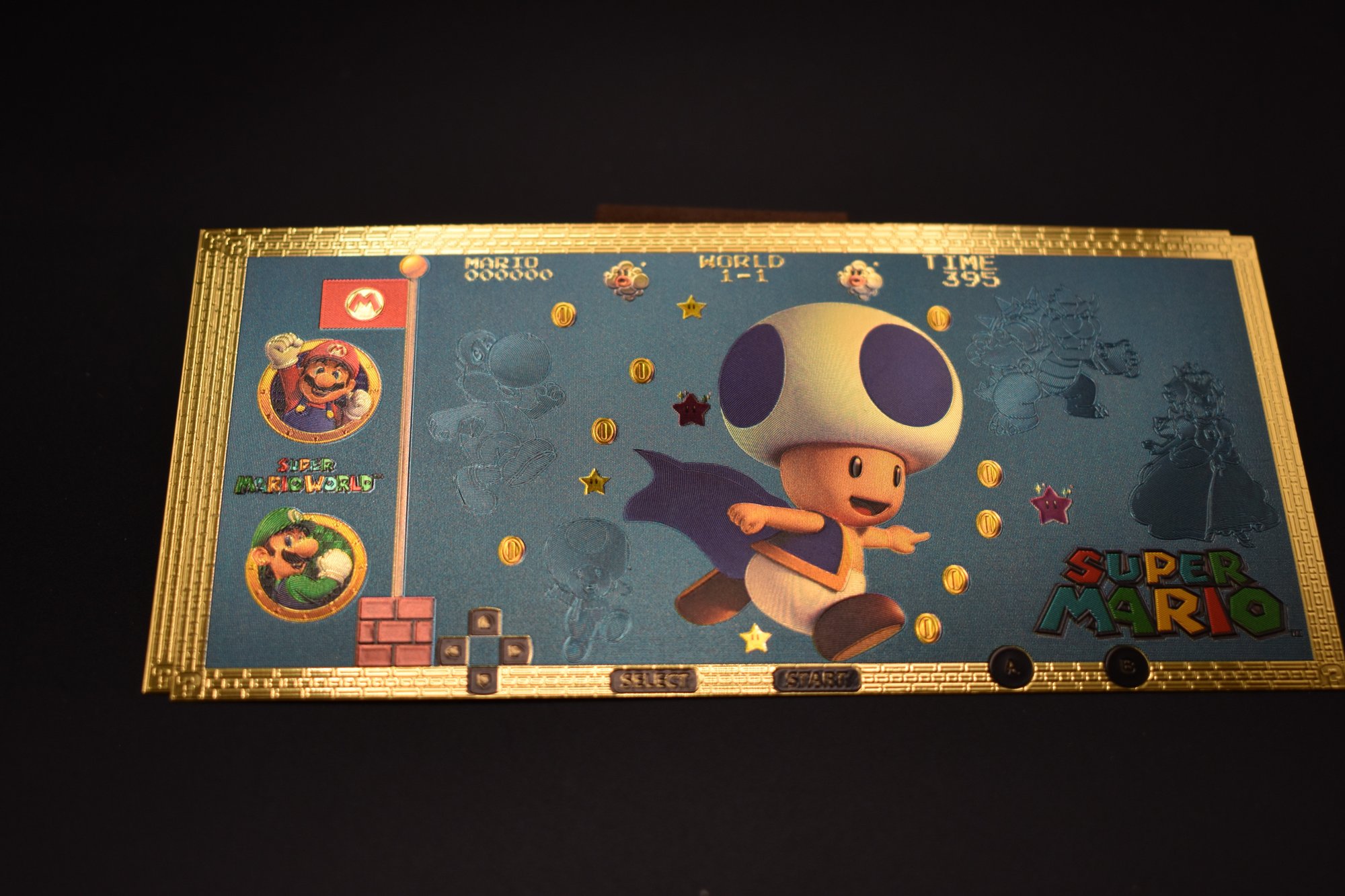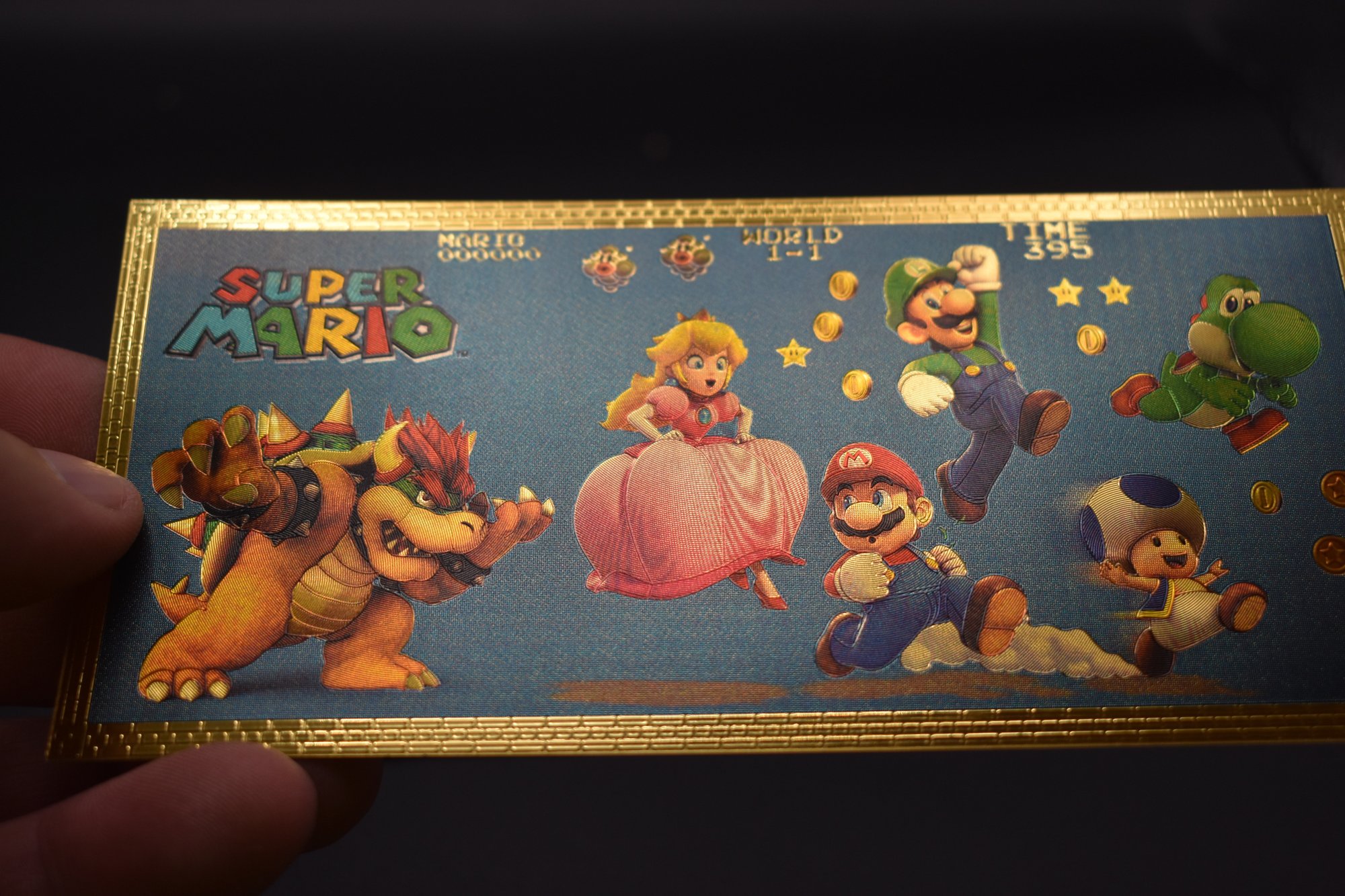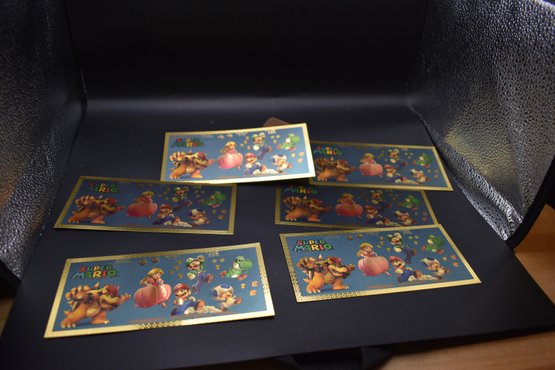 Notes: 5 Piece, Super Mario, Gold, 100, bill