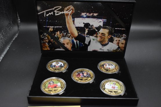 5 Piece Tom Brady Gold Plated Coin Set With Case