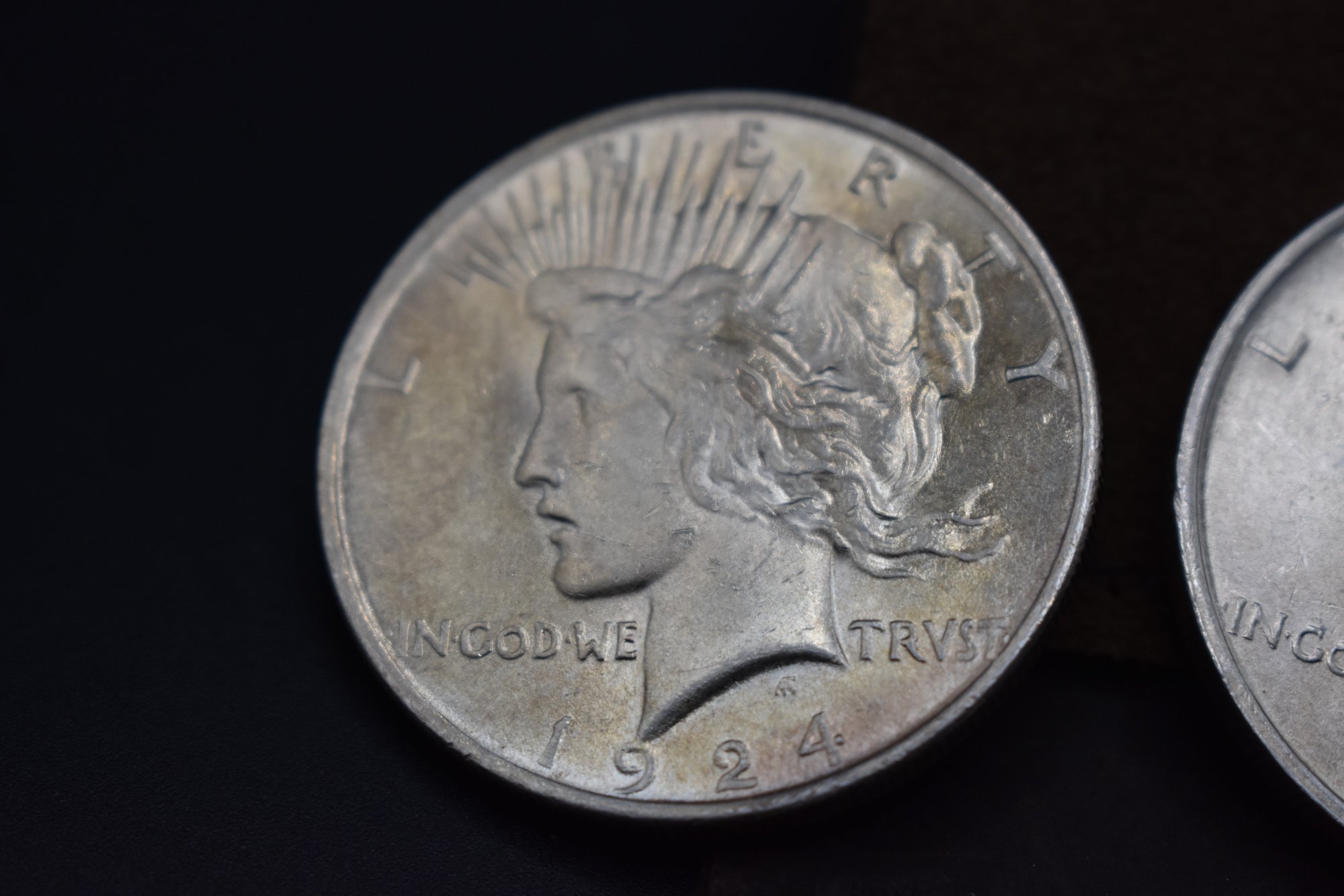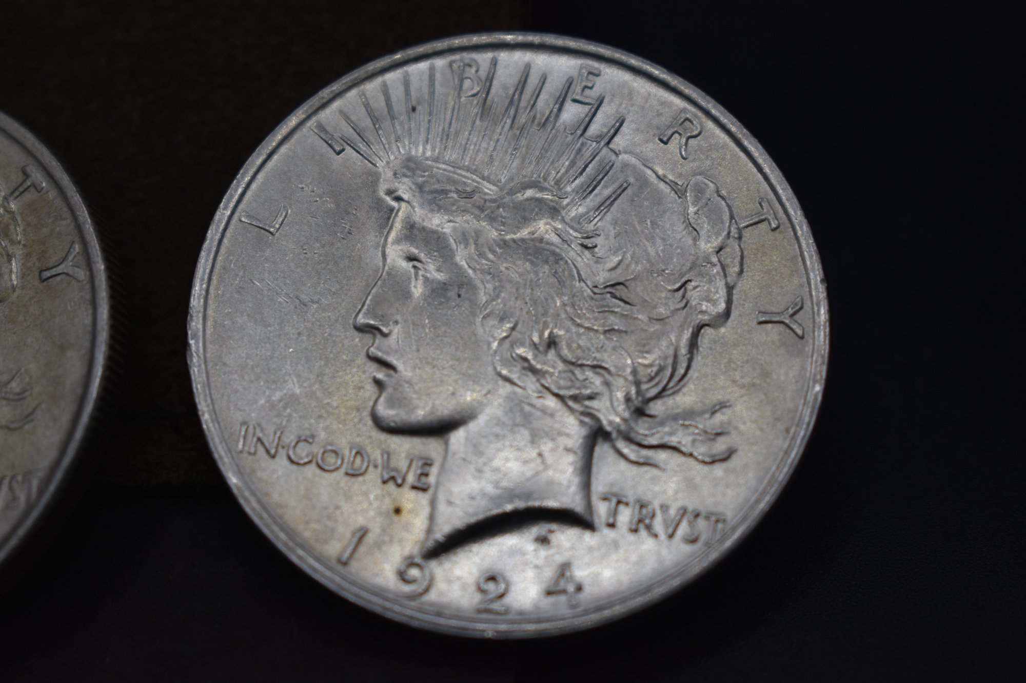 A pair Of 1924 Uncirculated Peace Dollar Coins