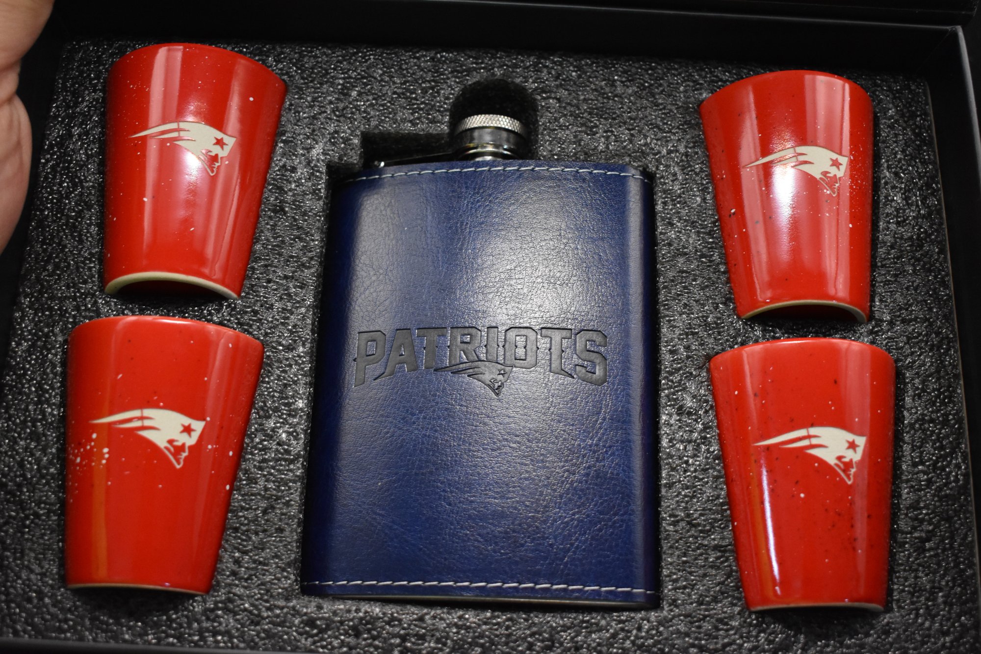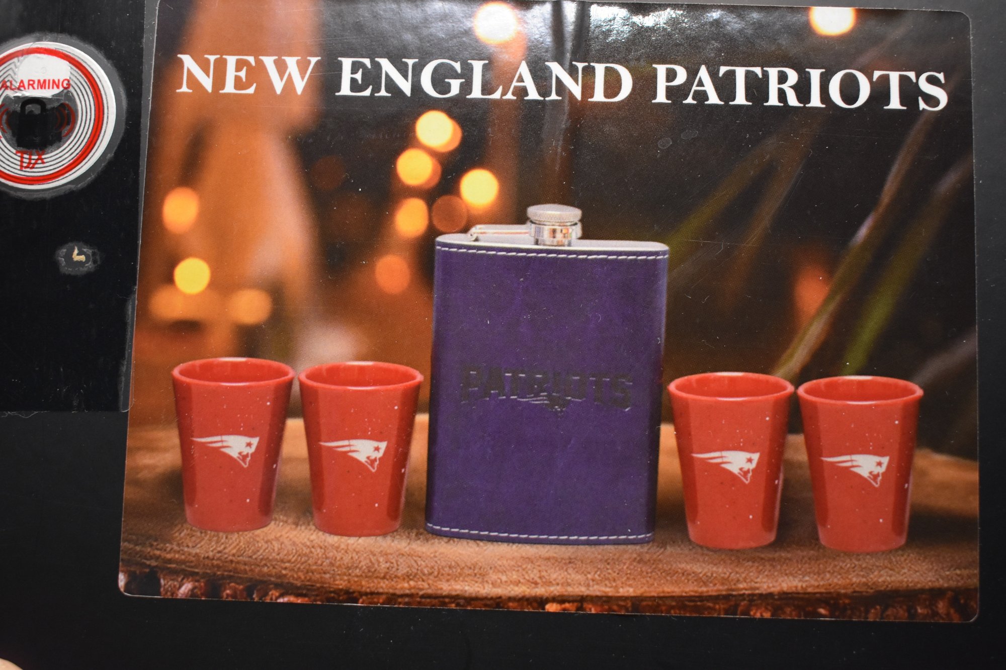 New england Patriots Shot Glass and Flask Set Brand New in Box