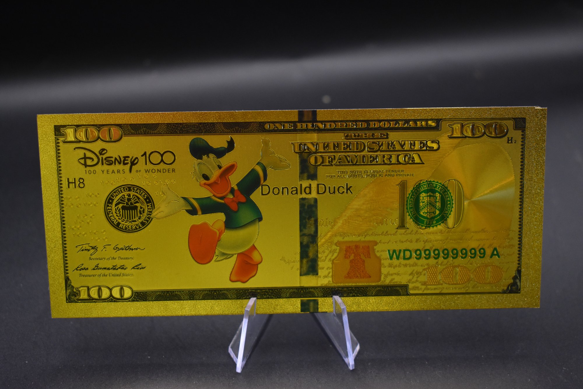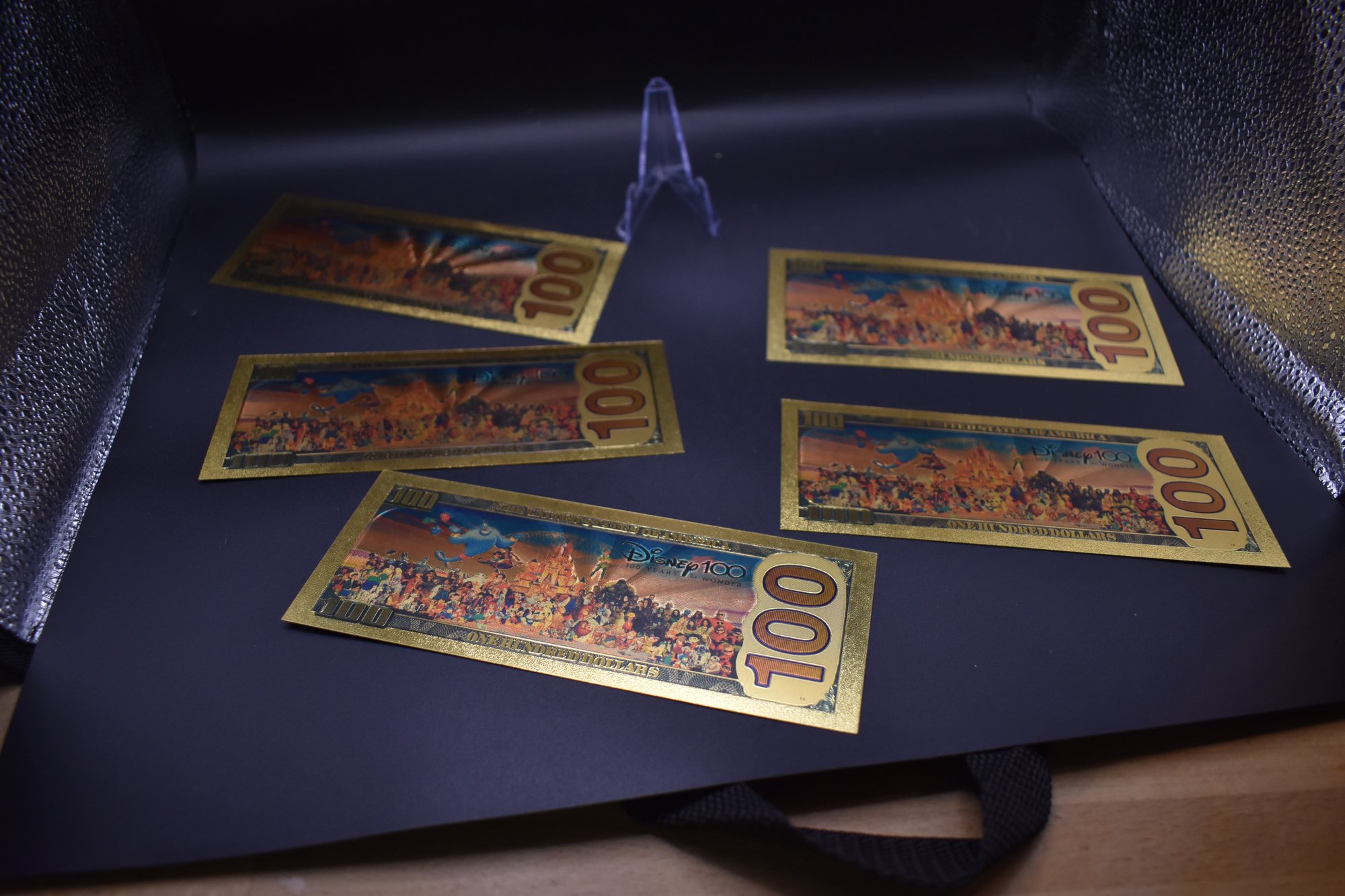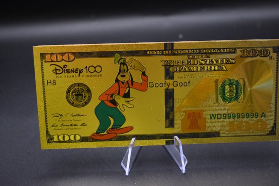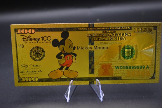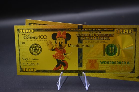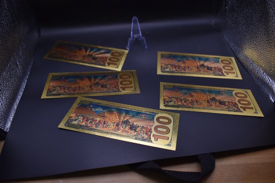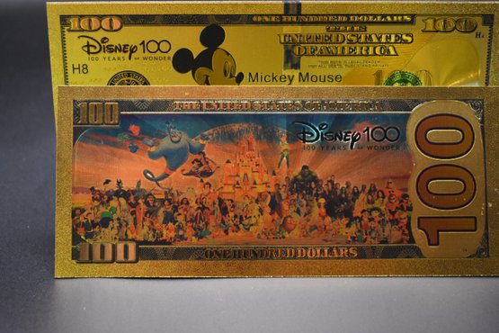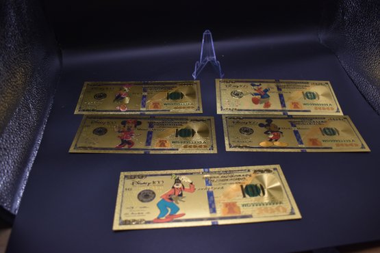 Gold Foil Walt Disney 100 Dollar Bill 5 Piece set