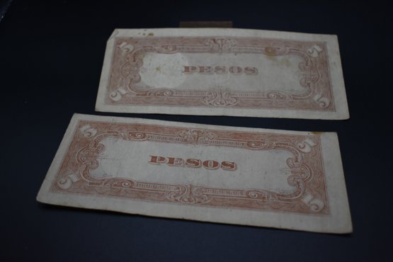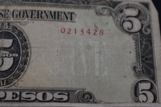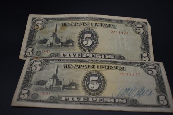 Two Japanese Government 5 Pesos Note Circulated Condition