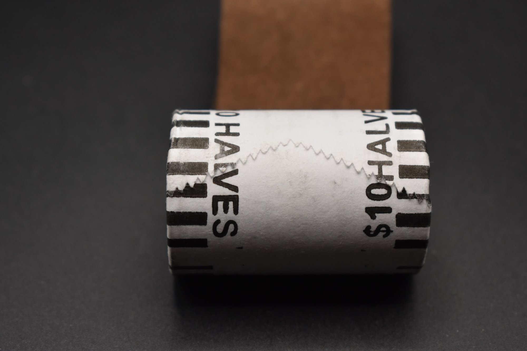Unsearched Bank Roll of 50 cent Kennedy Half Dollar 1976 on one end