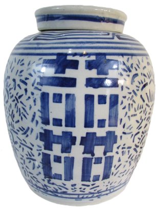 Signed porcelain base GINGER JAR with lid