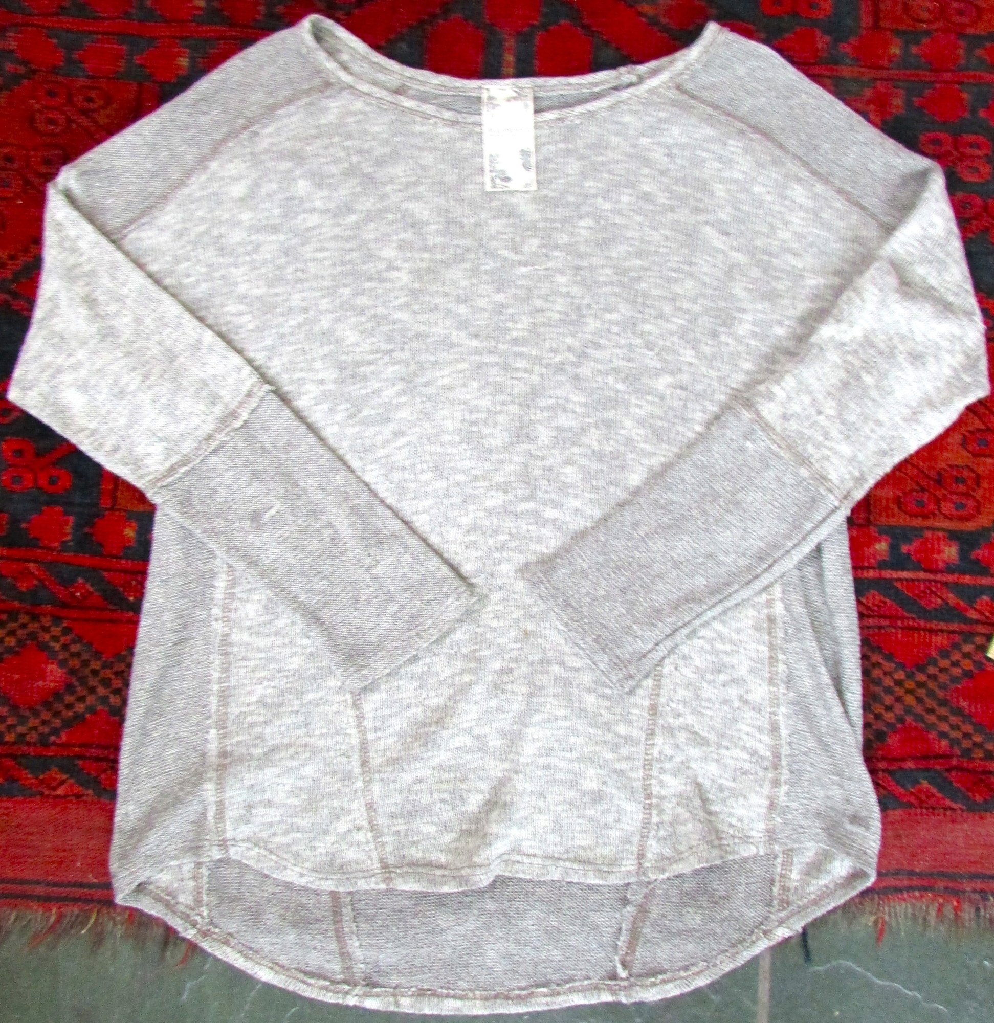Long raglan sleeves, shirttail hemline