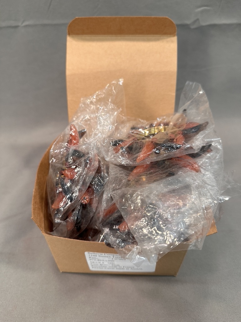 12 napkin rings in a sunburst design mimicking horns. Never used in original plastic wrapper.