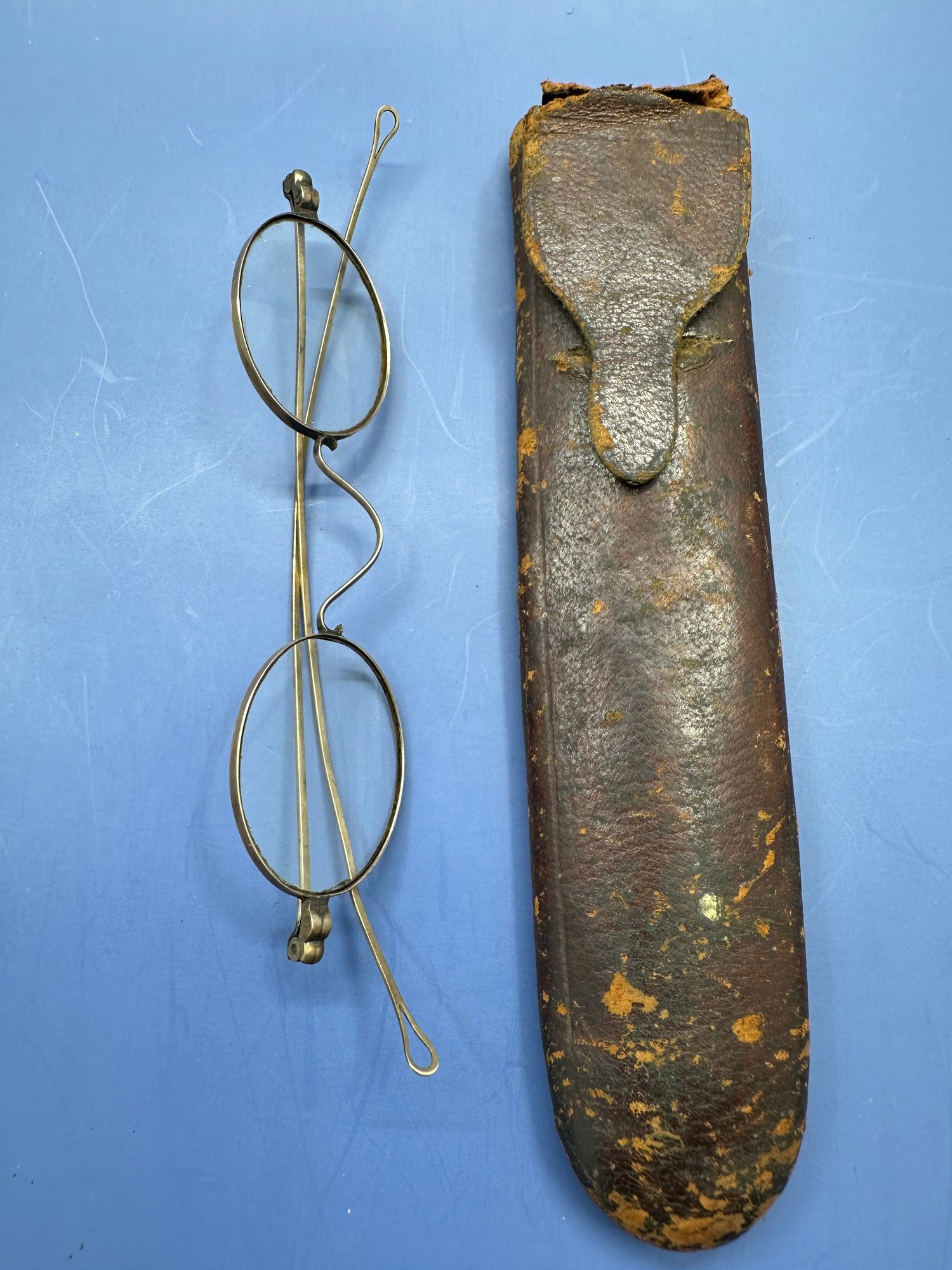 An antique pair of wire rim glasses made of 14k gold. Fine quality reading glasses for the time. 19th century.