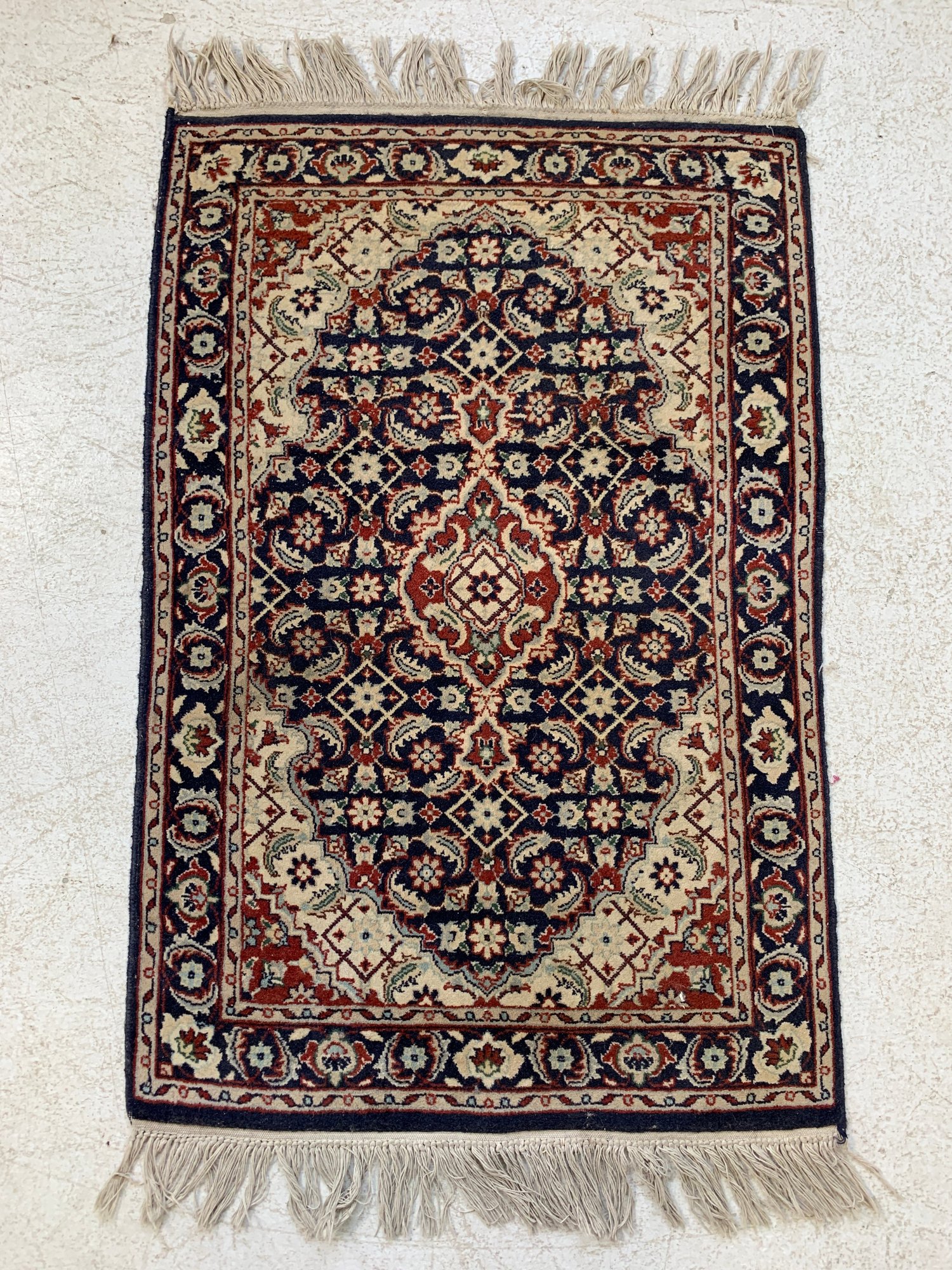 Dimensions: 2'2" W x 3'9" L with fringe.