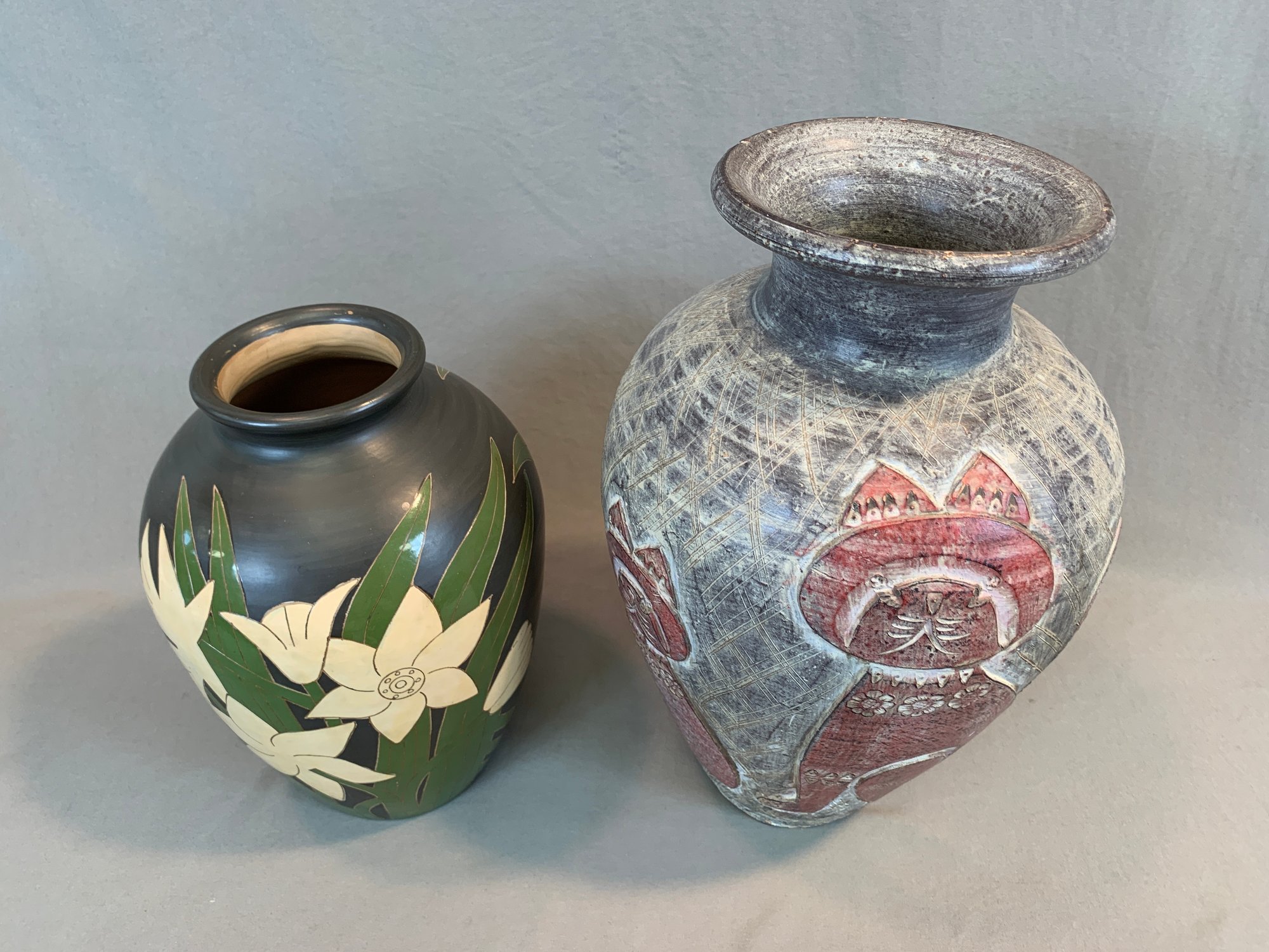 One with a lotus and leaf design , the other with a cat design.