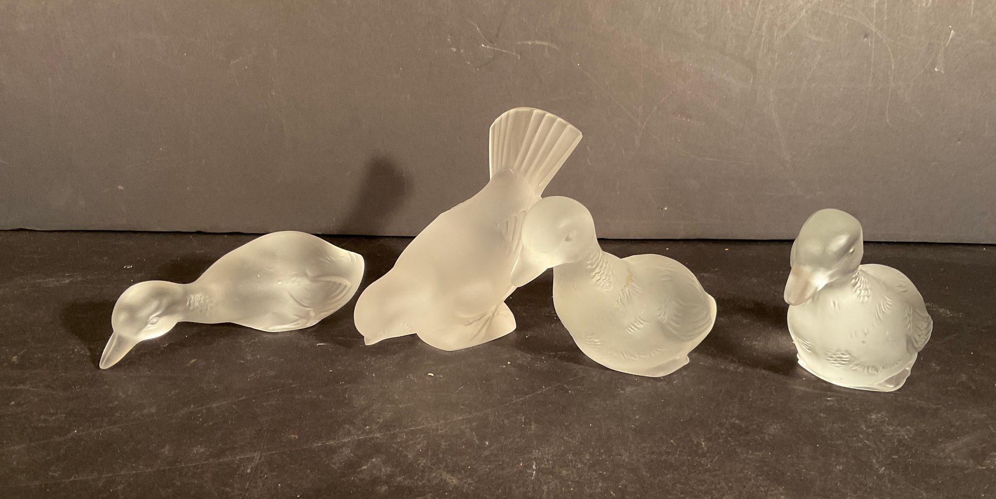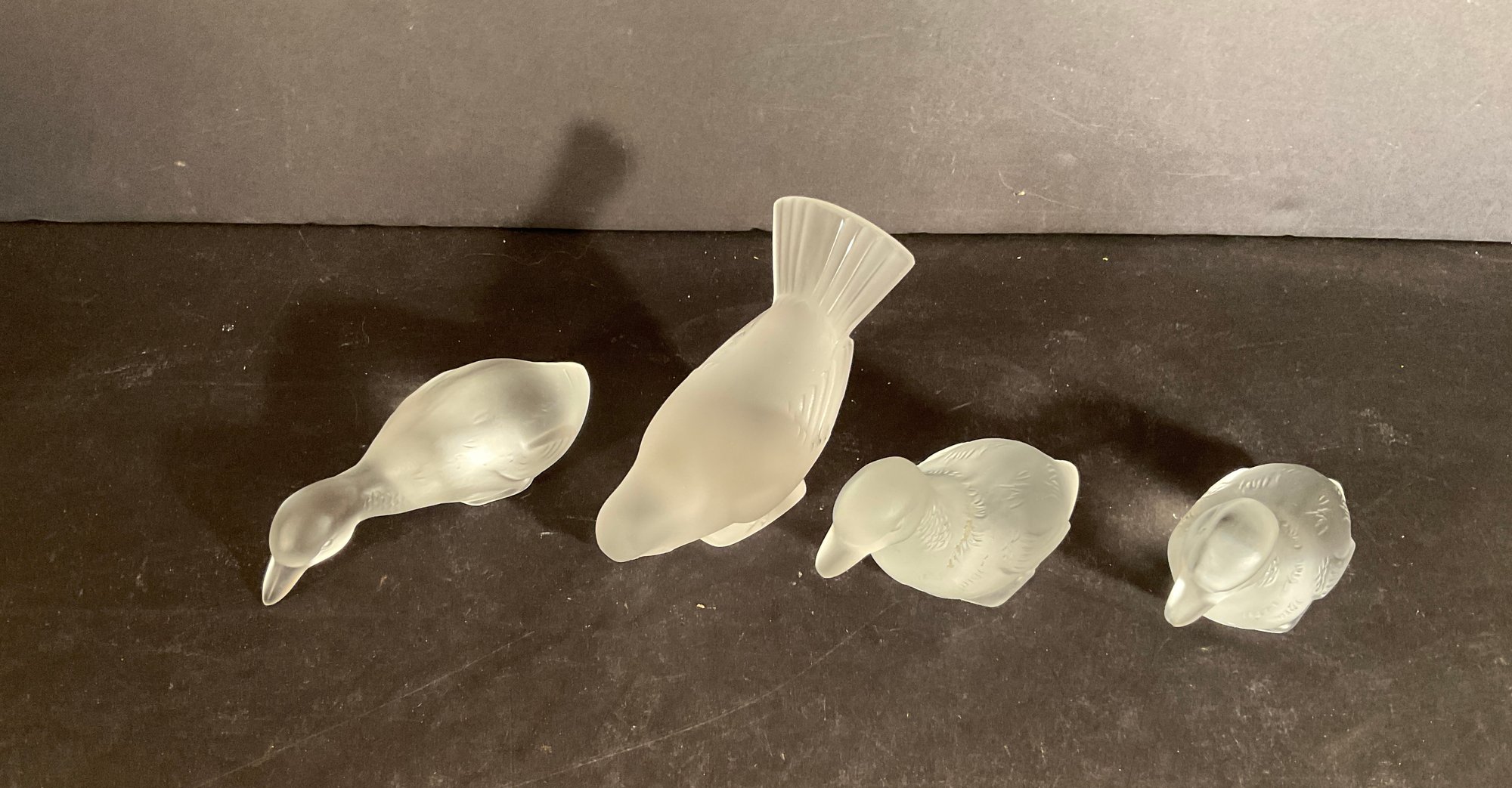 A group of frosted figurines by Lalique and Baccarat, all fully signed.
