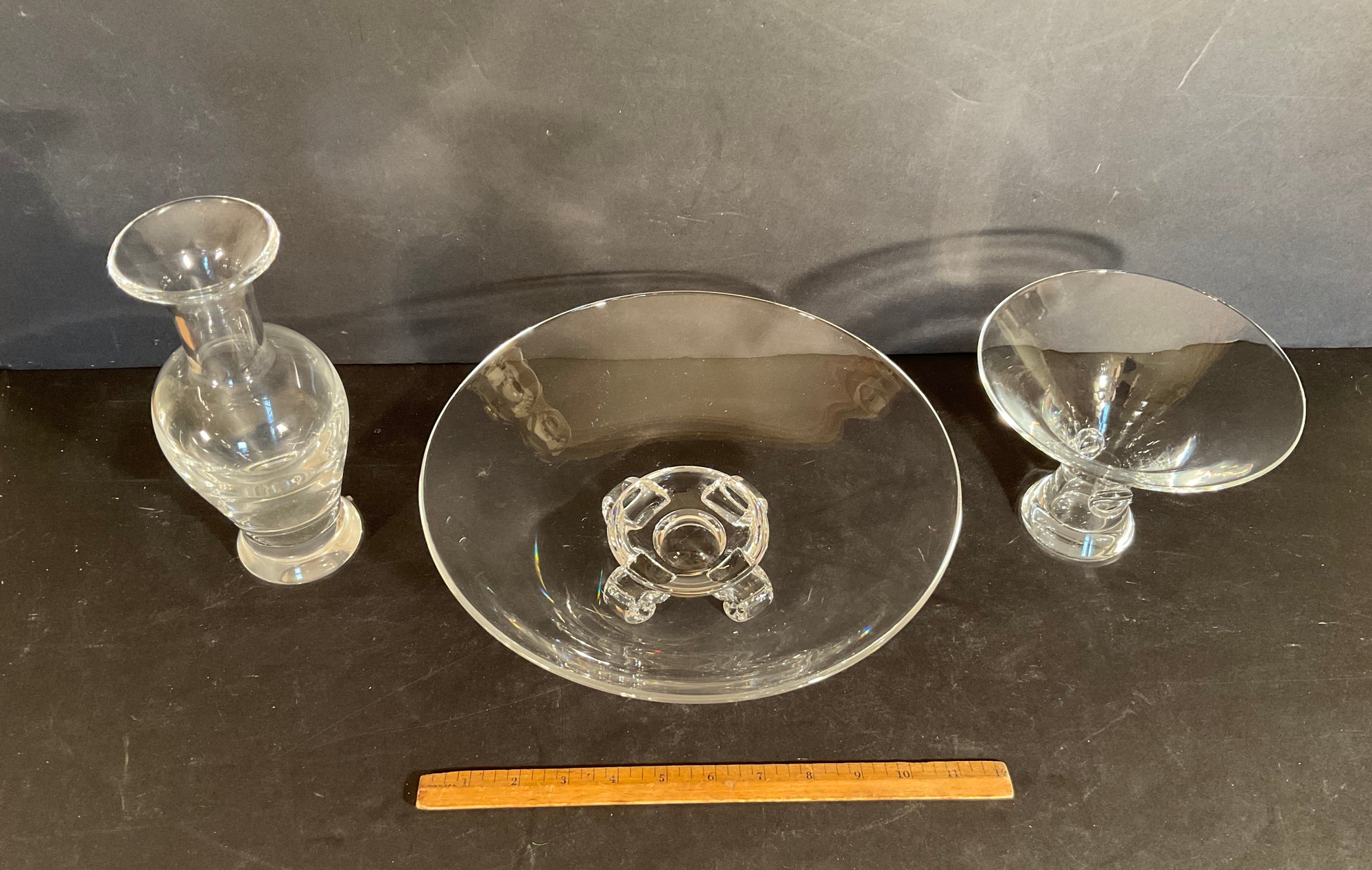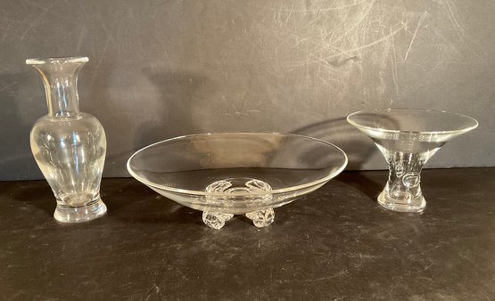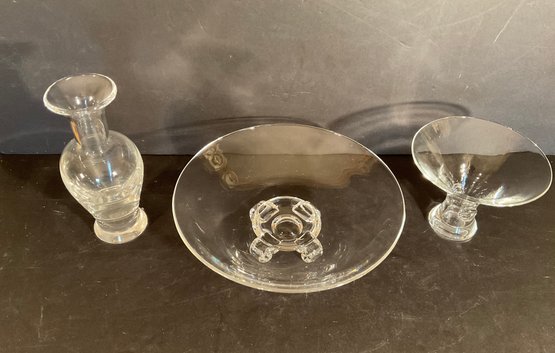 The large bowl was designed by JOHN DREVES. The vase was designed by DON POLLARD, The flair vase designed by George Thompson.
