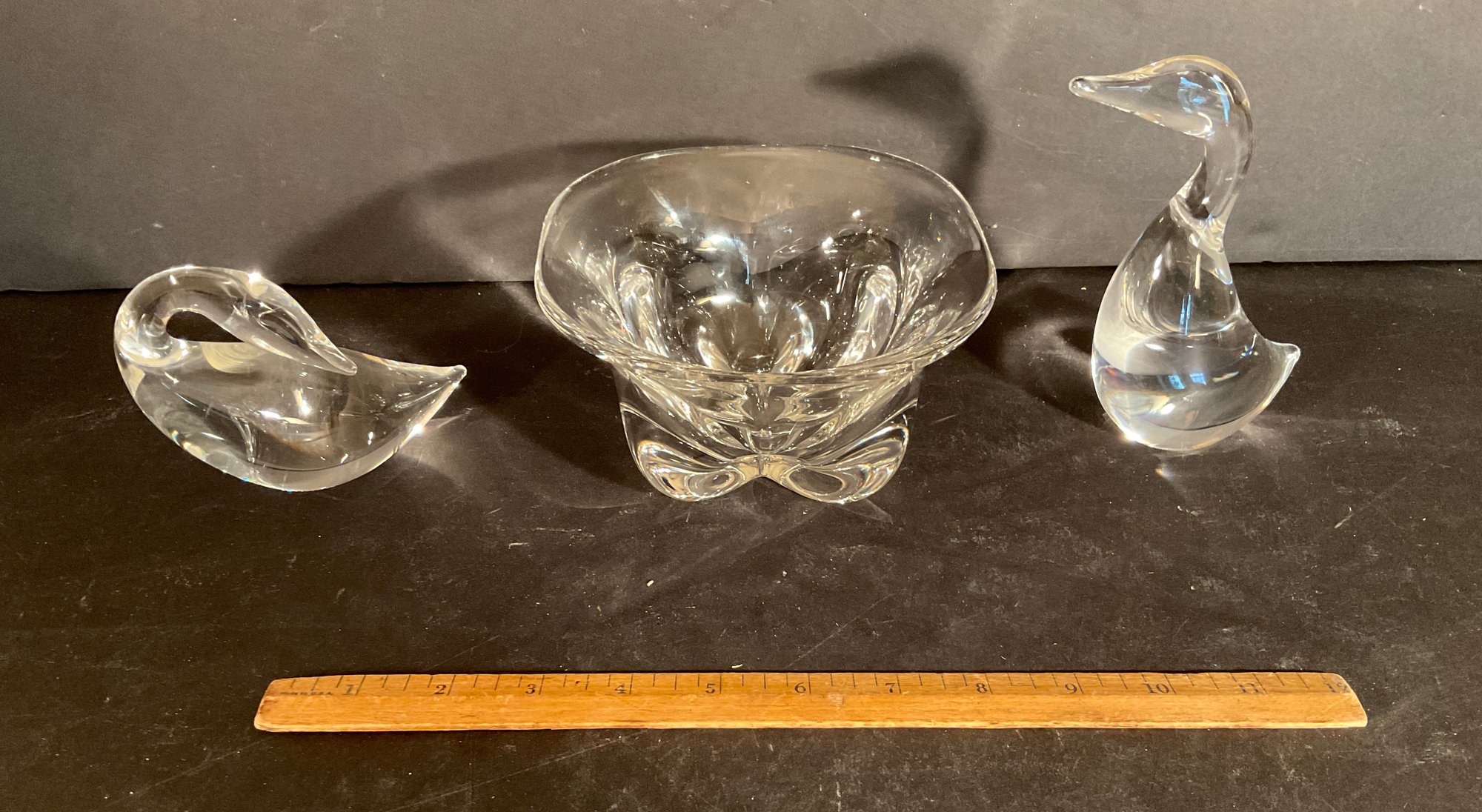 The two figurines are signed, the bowl probably had a paper label. It is not signed.