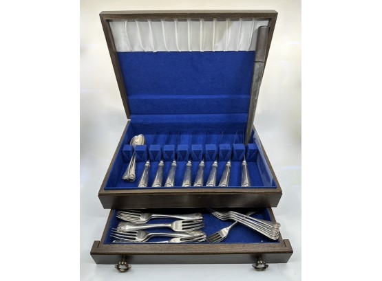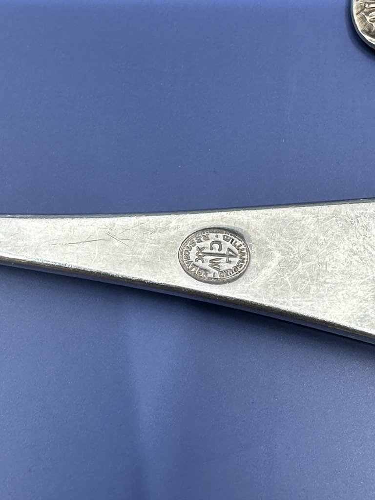 Steiff Colonial Williamsburg Shell pattern of sterling silver silverware. Mid to late 20th century. Comes in wooden box.