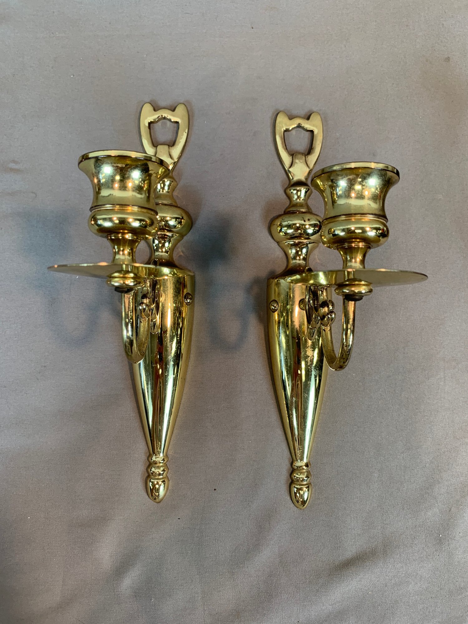 Single arm brass sconces: 10 " H x 2" W x 6" D