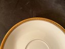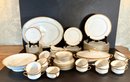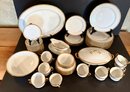 Set consists of 10 dinner plates, covered vegetable, 5 salad plates, large platter, gravy, boat, large salad, bowl, 8 cups and saucers, 7cream, soups, 5 berry bowls, six bread plates. 45 pieces total.