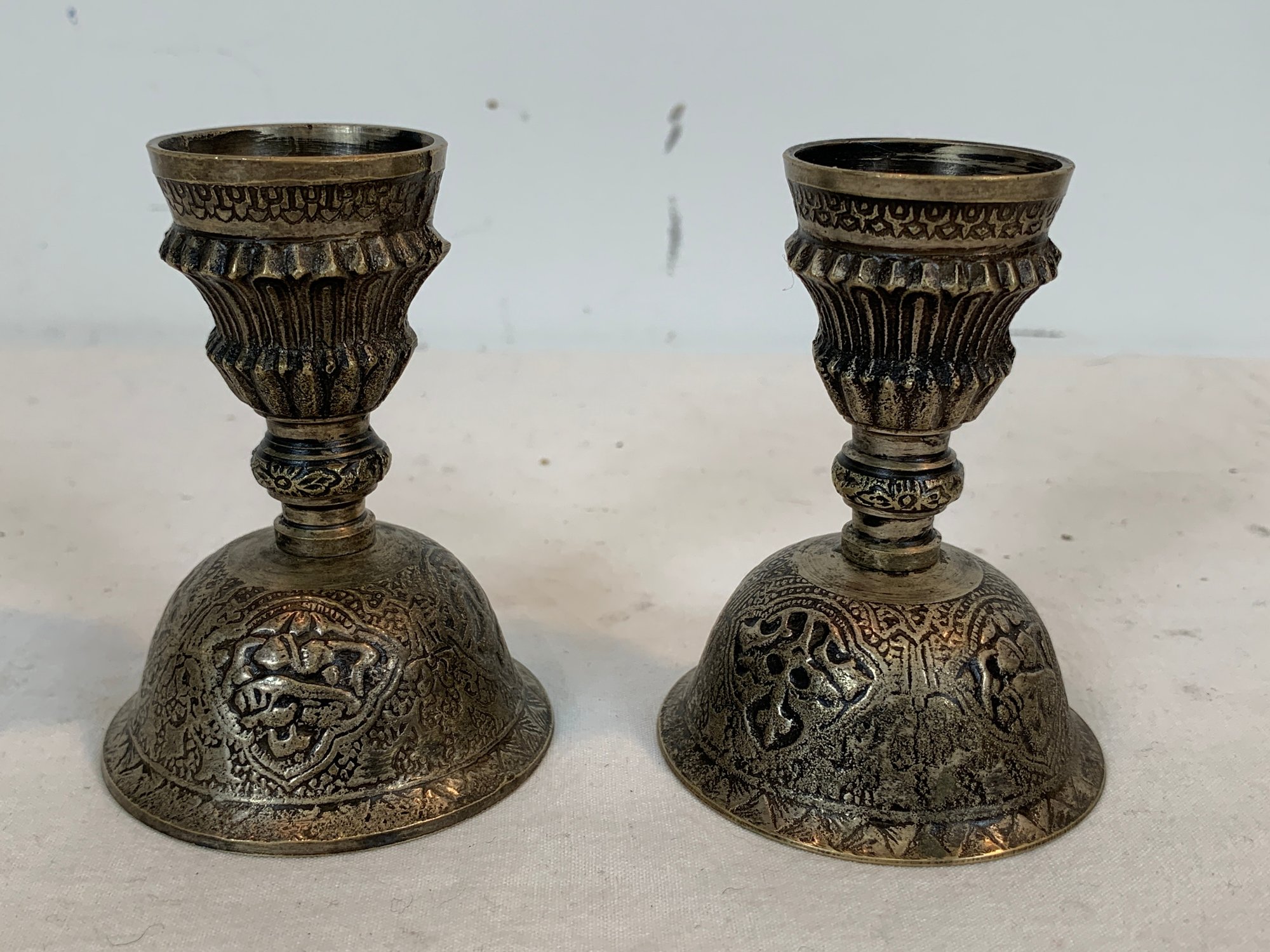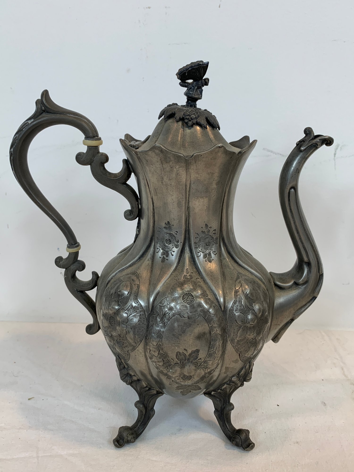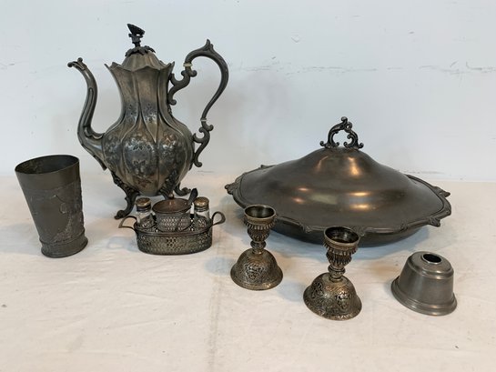 Including a covered serving dish , a coffee pot, a pair of candlesticks and other items . 7 items in total.