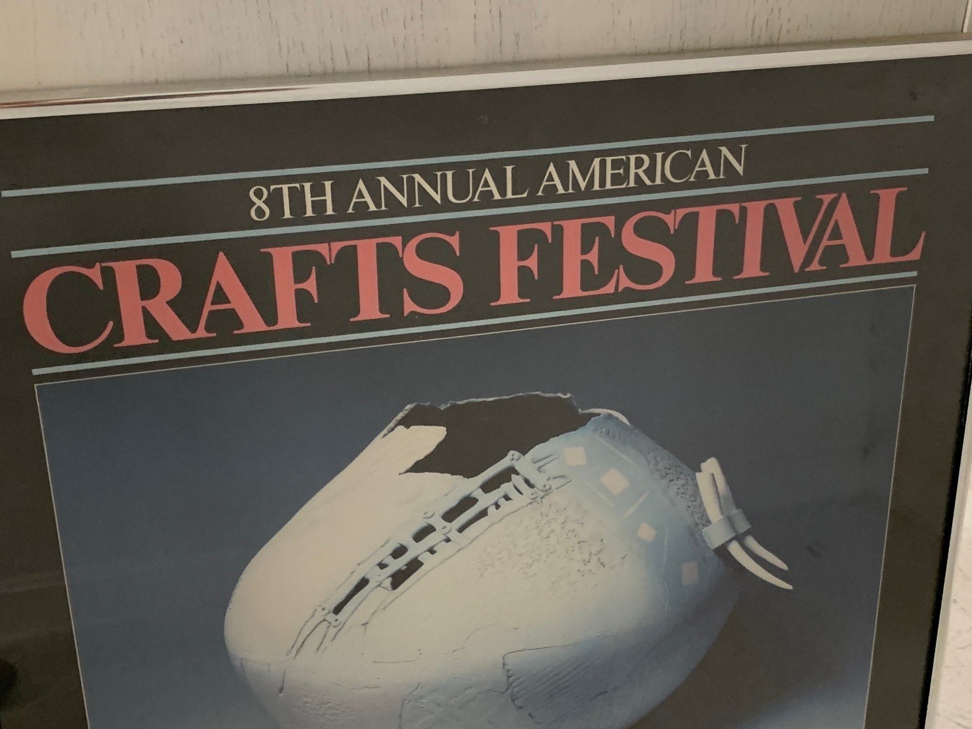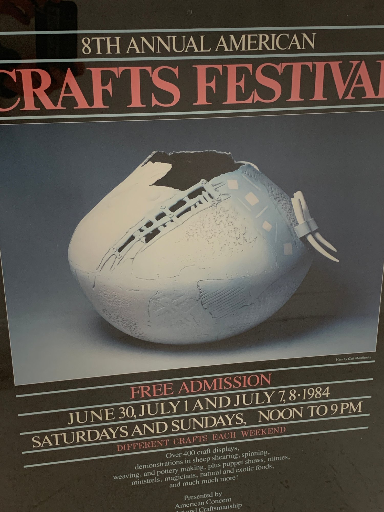 8th annual American crafts festival poster from 1984 featuring an image of Gail Markiewicz patchwork vessel.