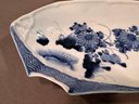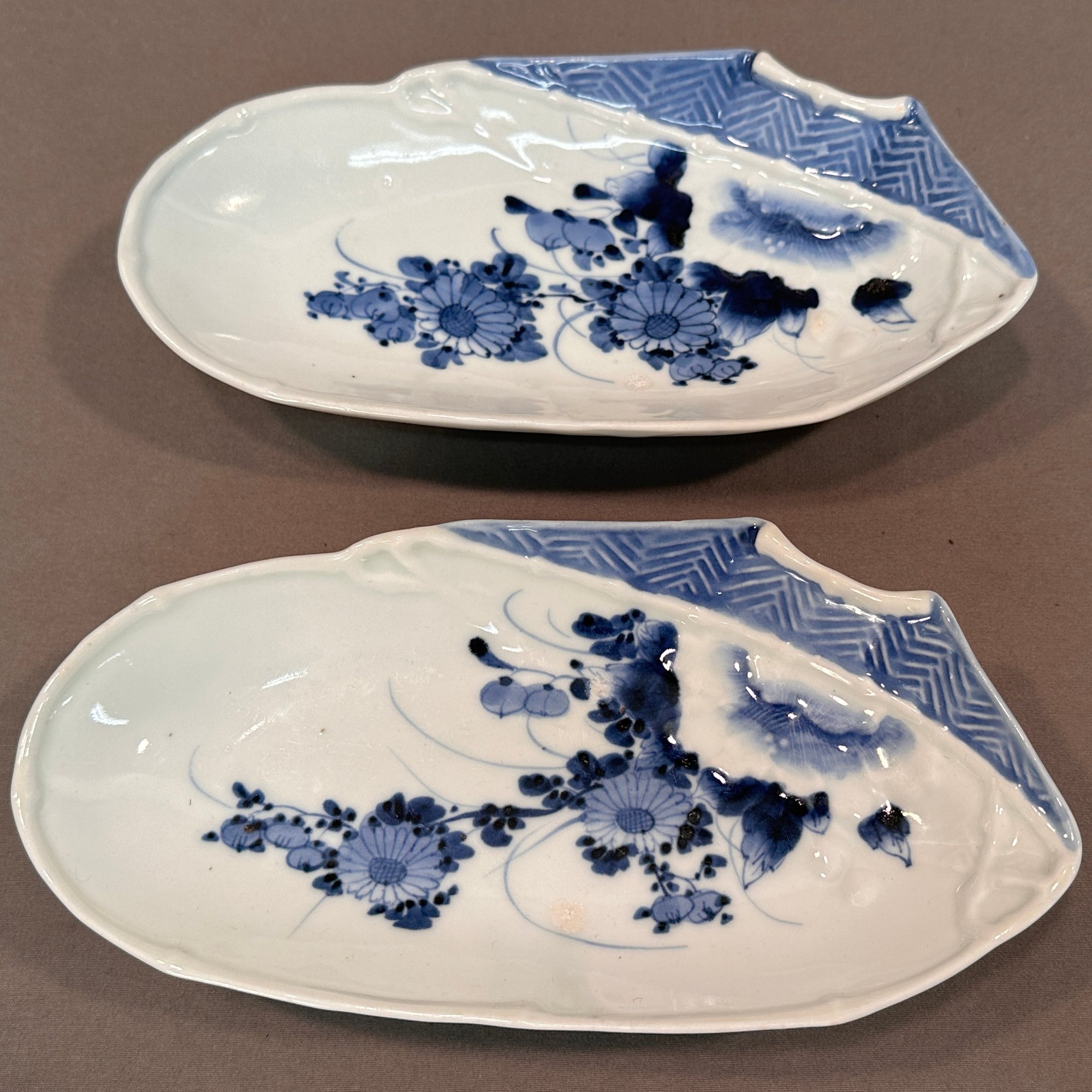 Blue and white hand painted with floral motif and painted accents on sides, interesting details in porcelain form.