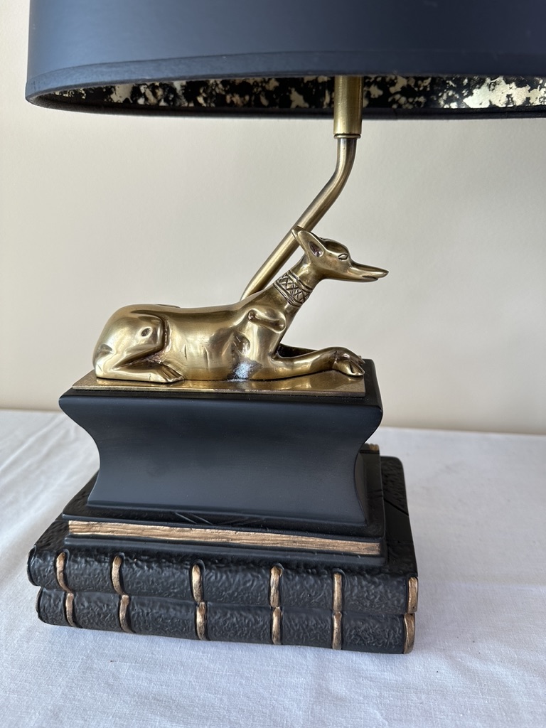 Featuring seated whippet dogs on a group books. Made by Chapman Co.