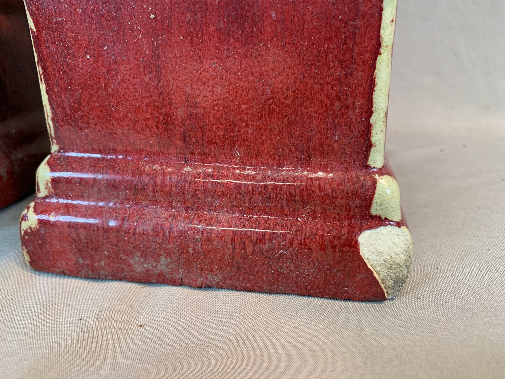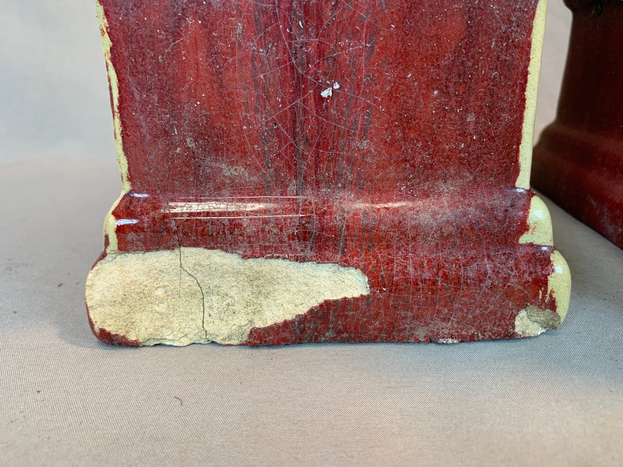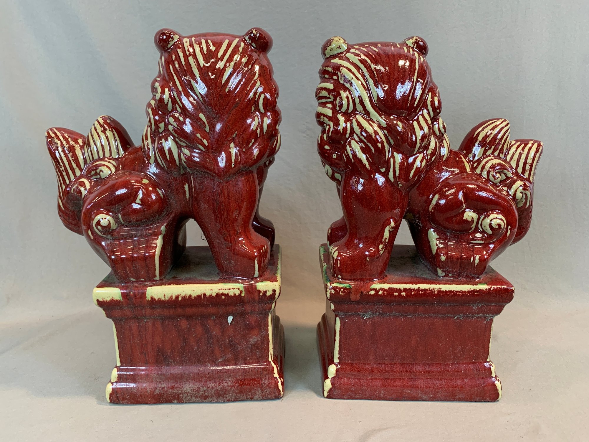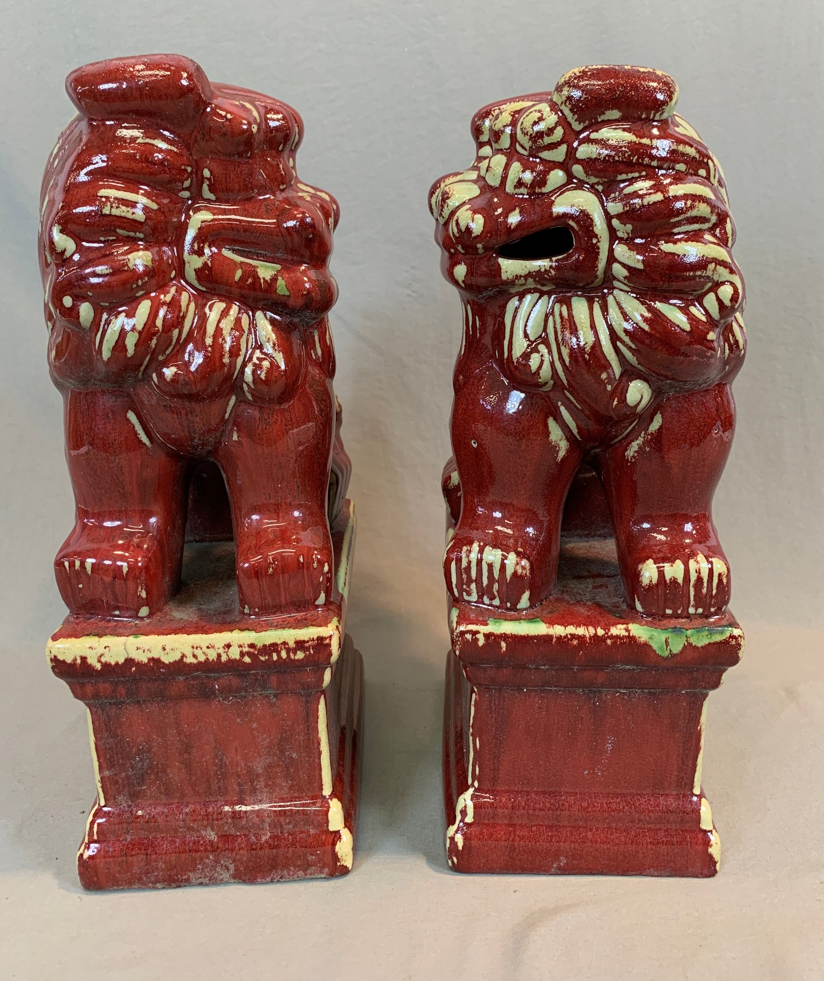 Condition: one corner of base chipped on each and one with a crack at the base, please refer to photographs.