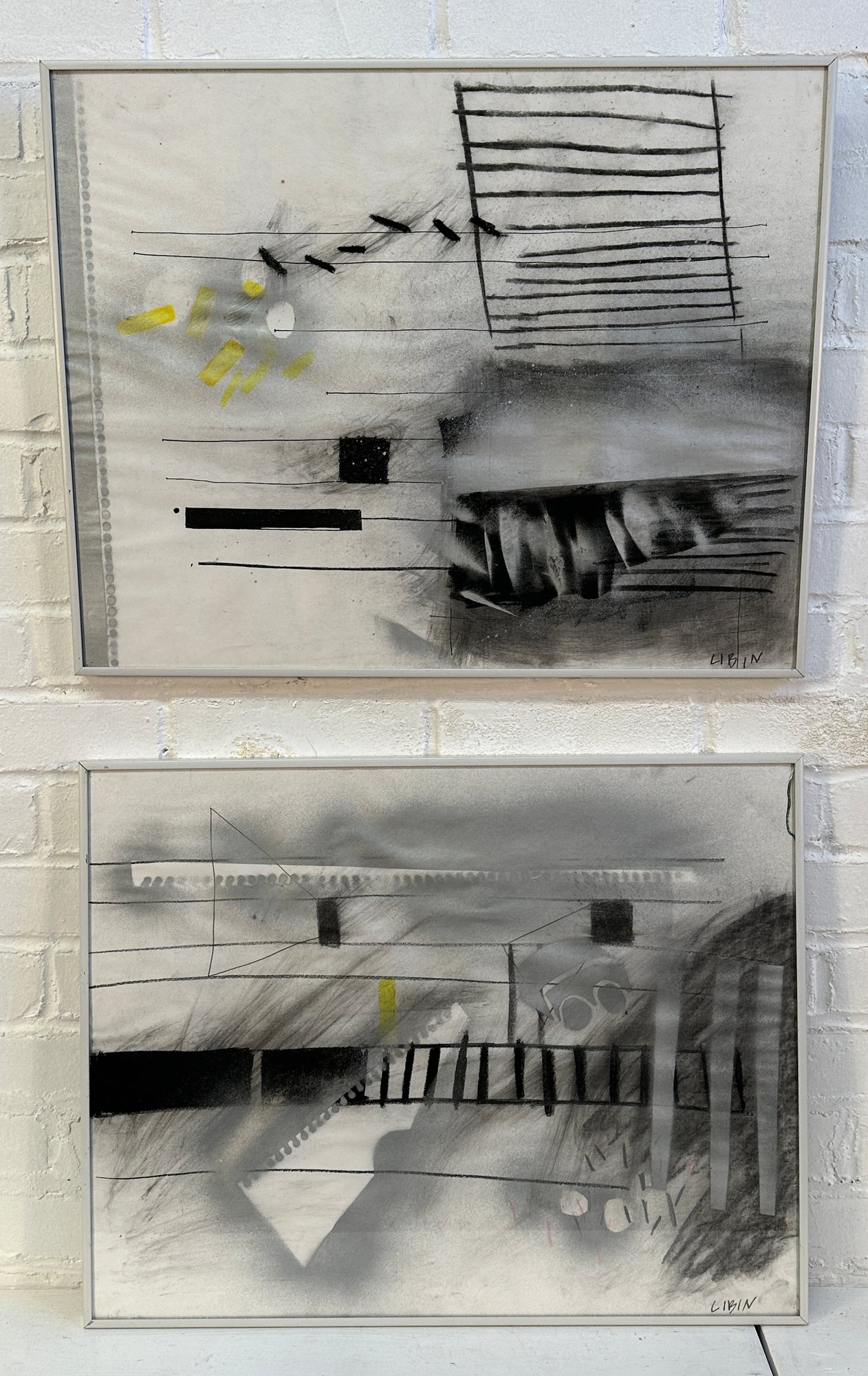 A pair of black and white Claire Libin drawings. Framed under glass. Signed in lower right.
