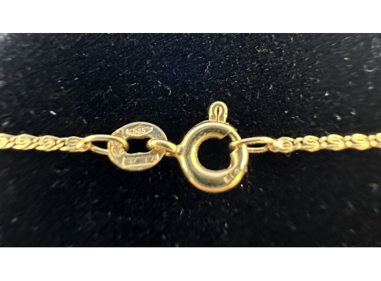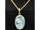 A 16" marked 585 (14k) chain with a beautiful cameo featuring a young angel. Also marked on pendant 14k.