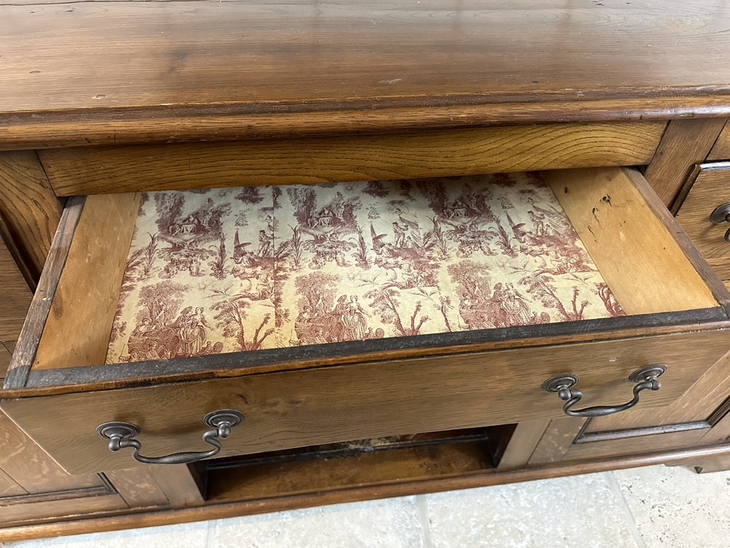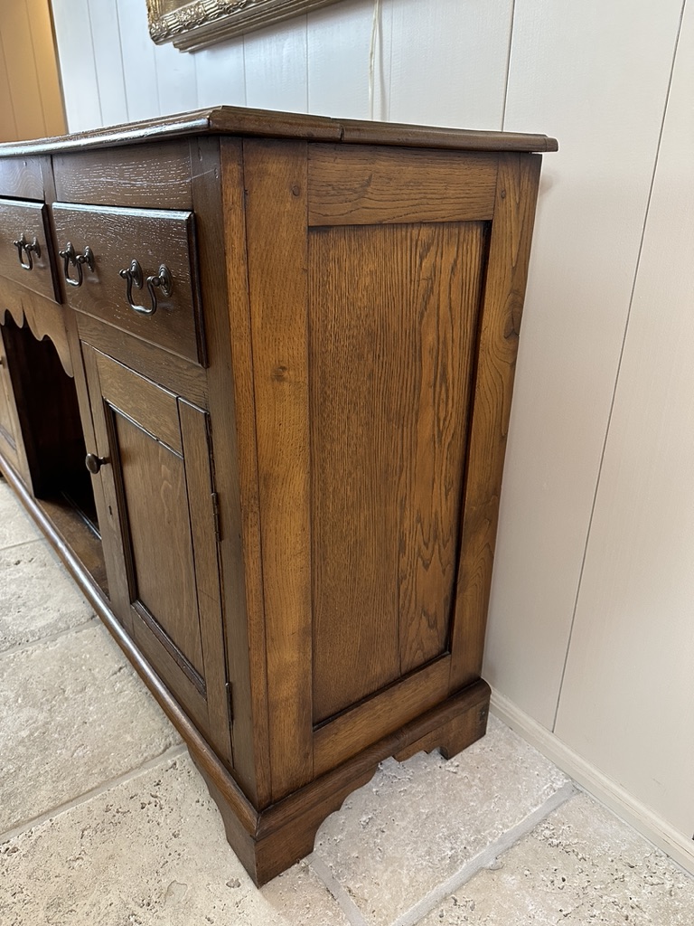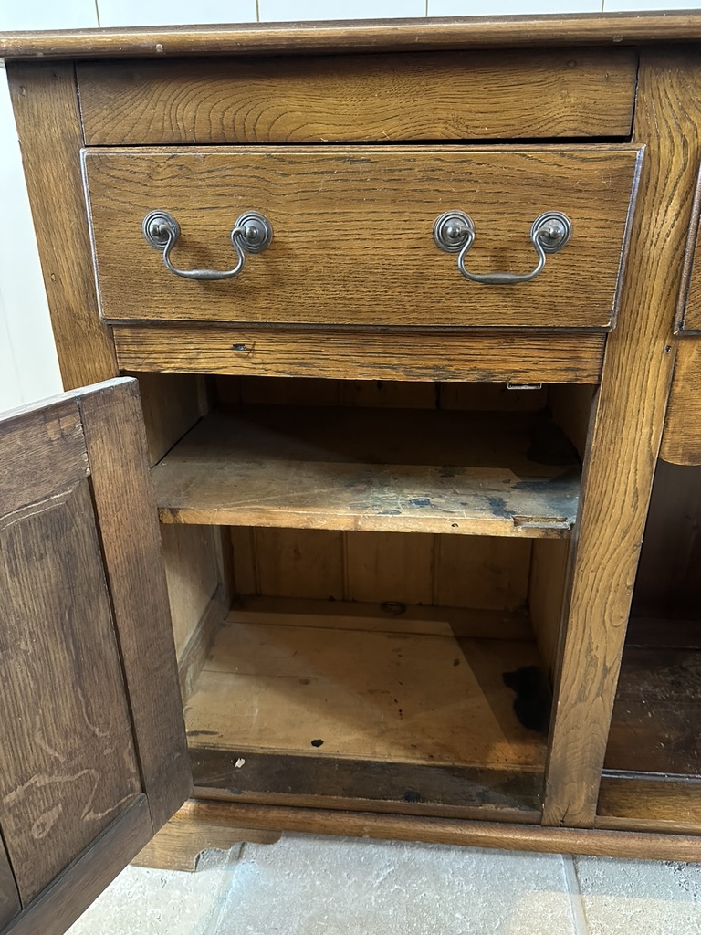 Featuring 3 drawers and two large door, great storage.