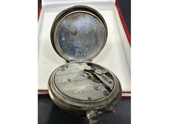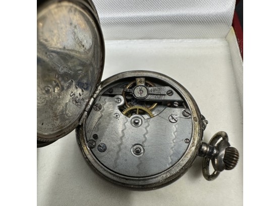 A Swiss made silver engraved ladies pocket watch featuring a painted porcelain face.