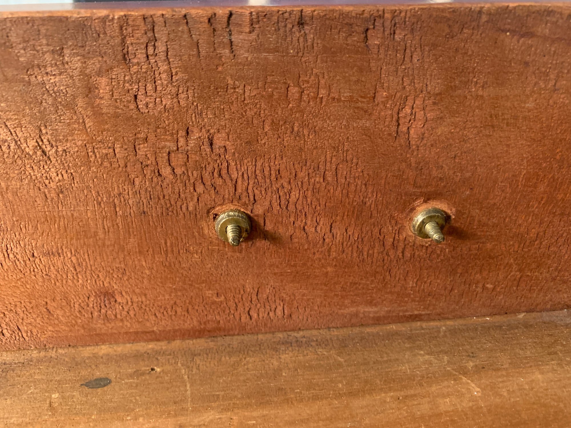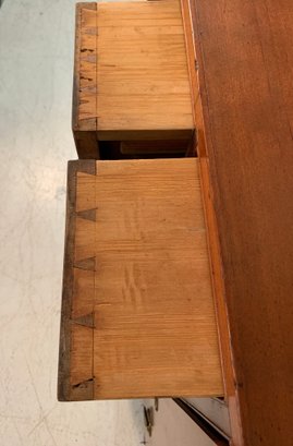 Condition: Good overall. Refinished. Drawer pulls have been replaced with period-appropriate hardware. Some professional repairs throughout. There is a 1ΒΌ" indentation along the back top left. Please refer to photographs.