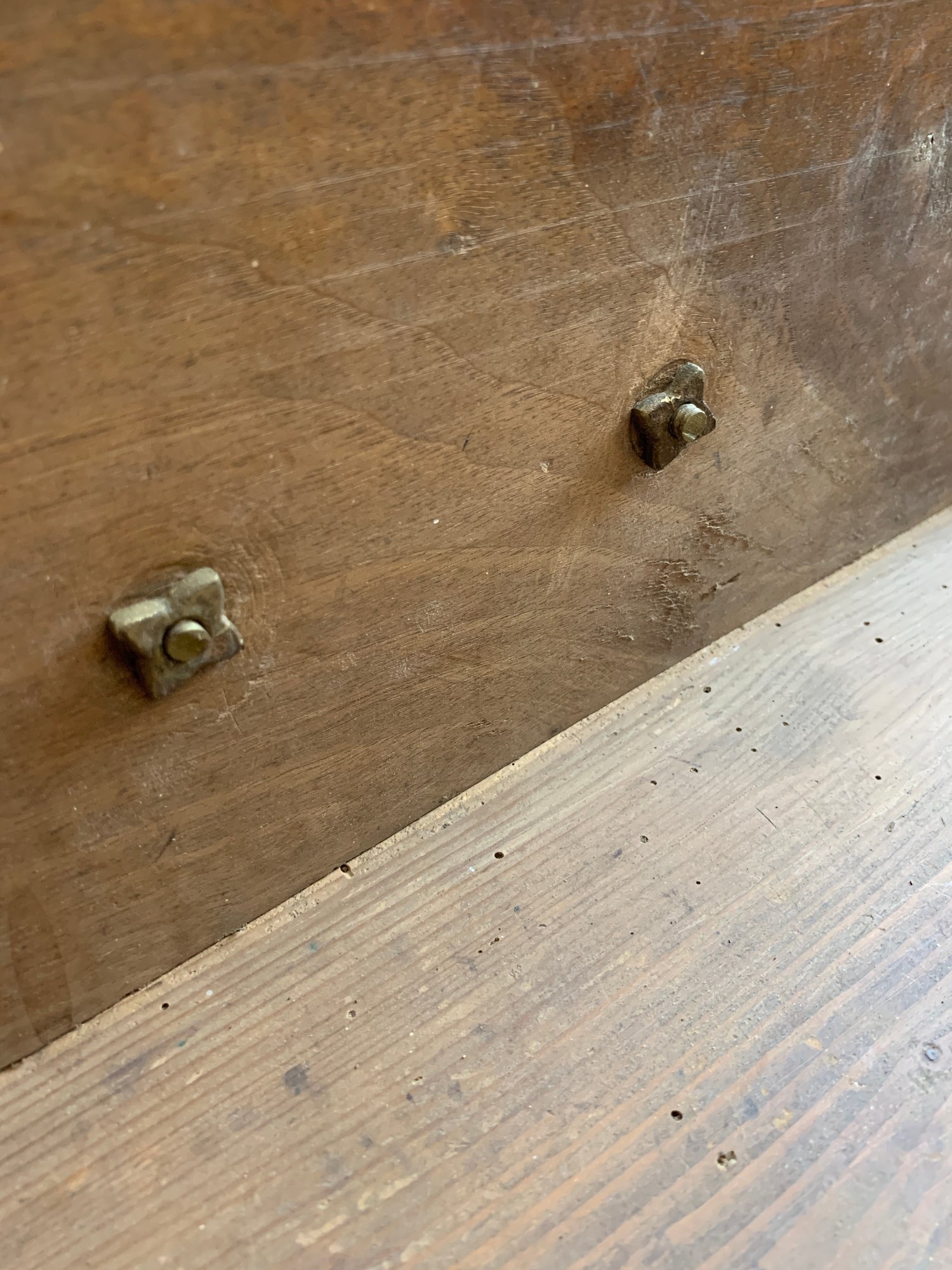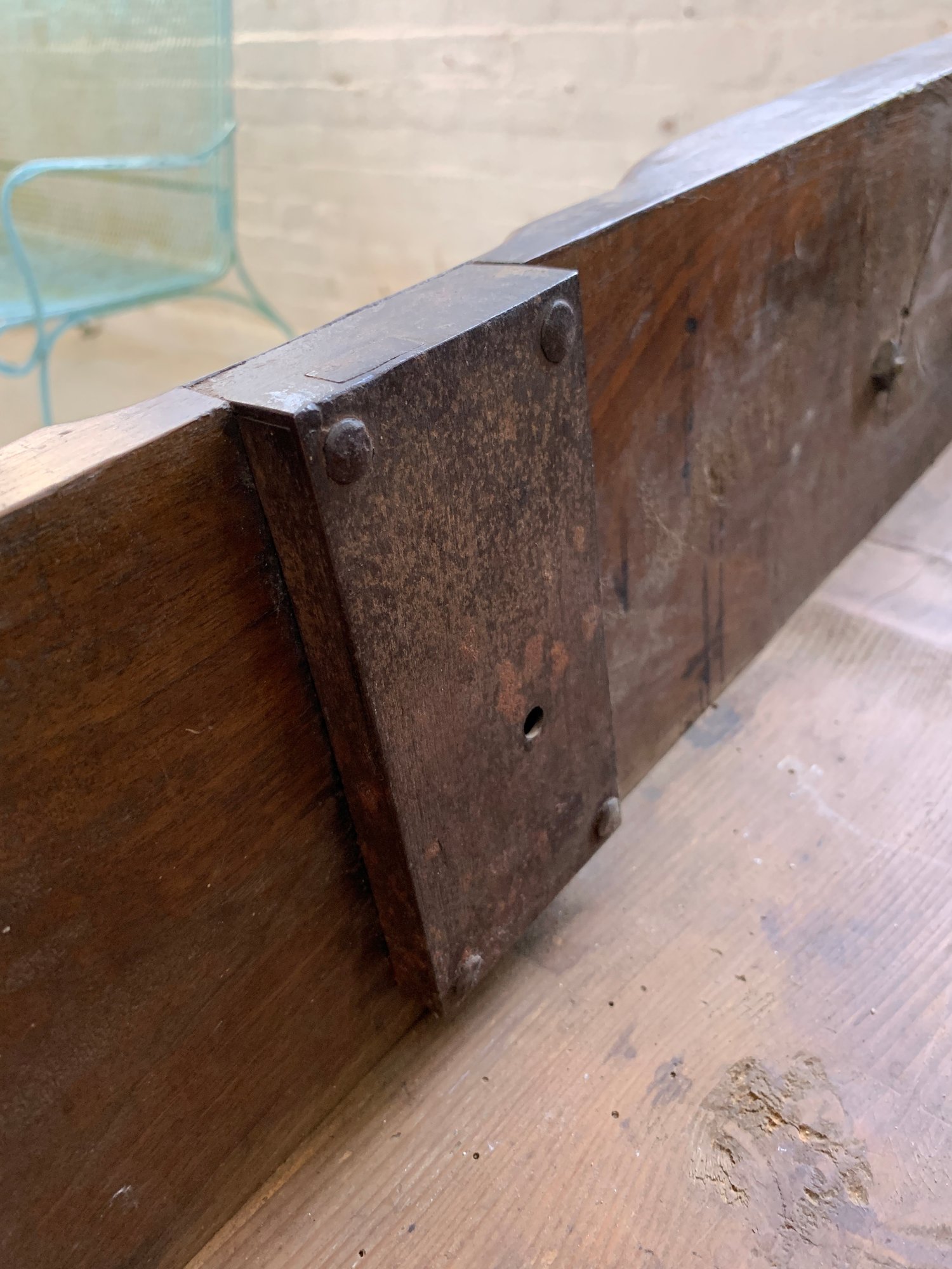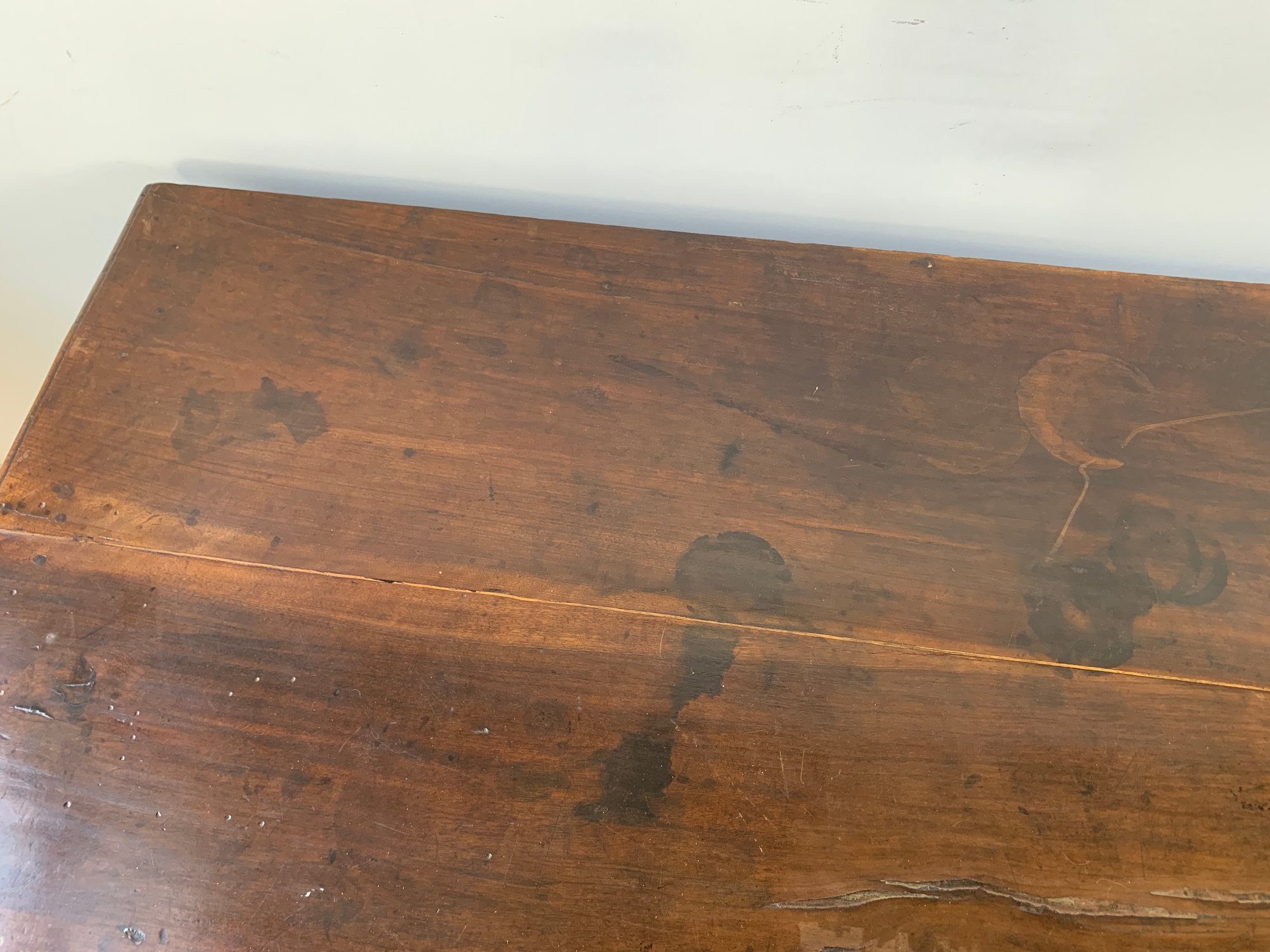 Condition: Good, top shows wear including water staining and a crack, woodworm holes consistent with authentic age, please refer to photographs.