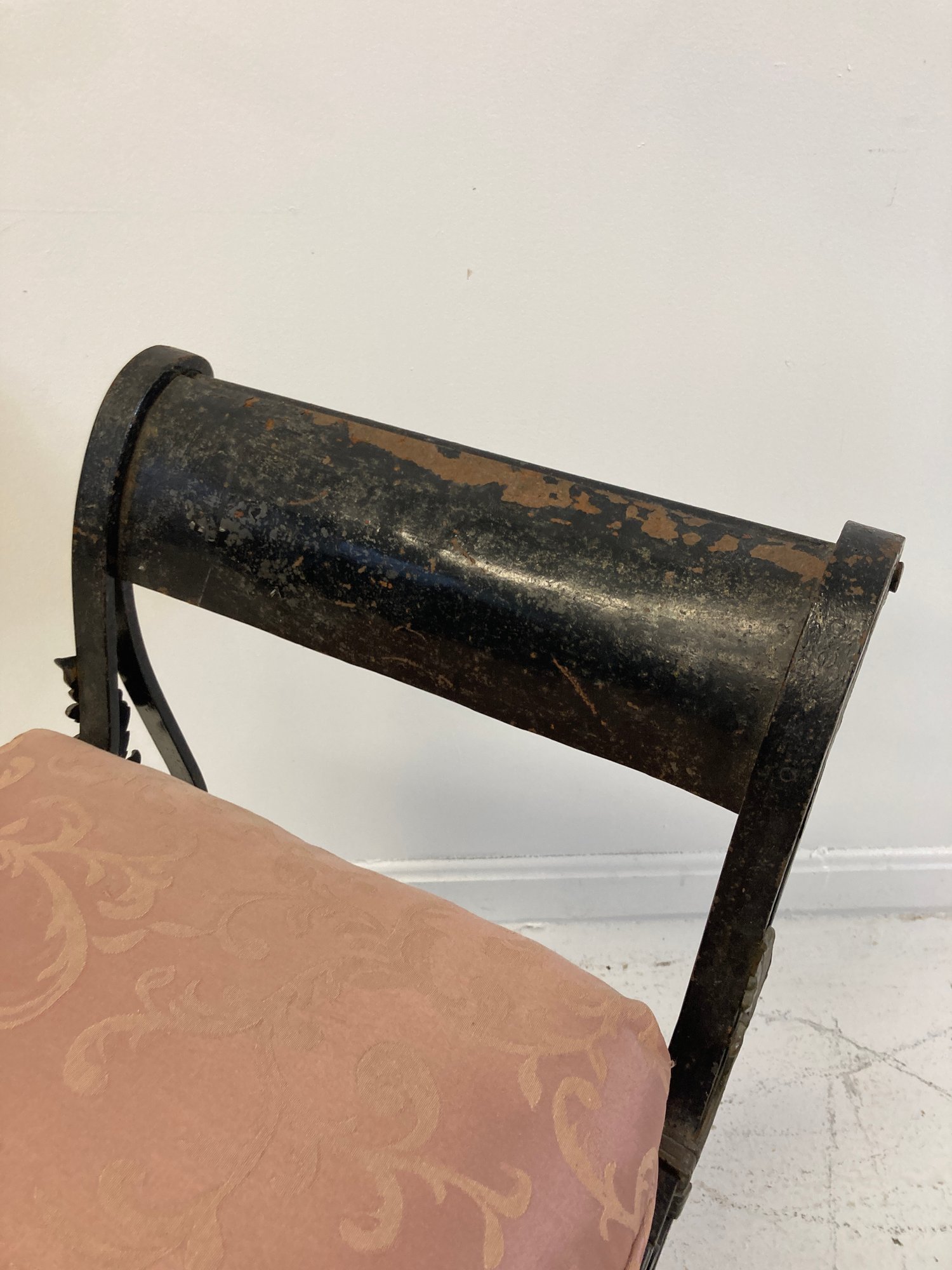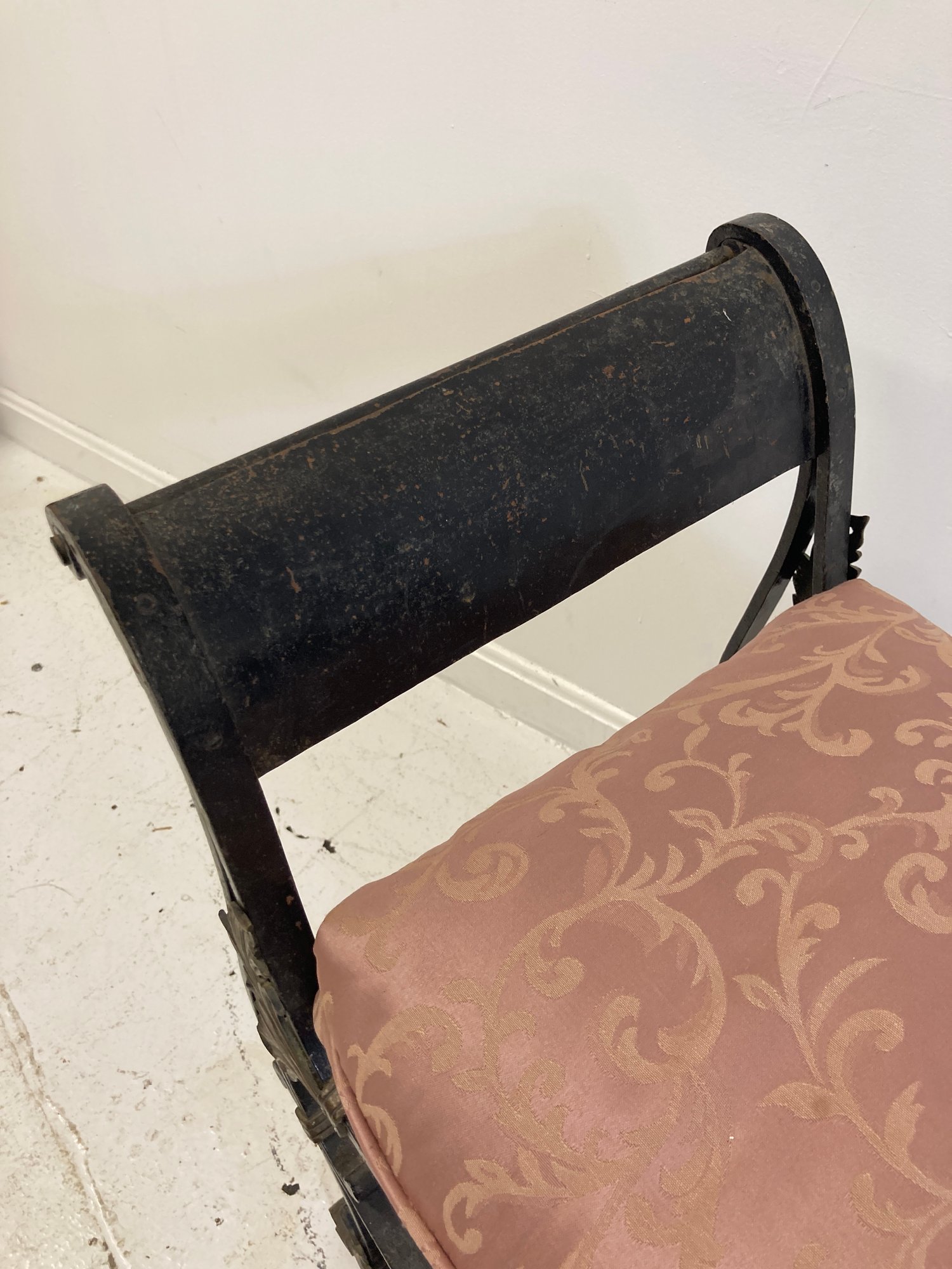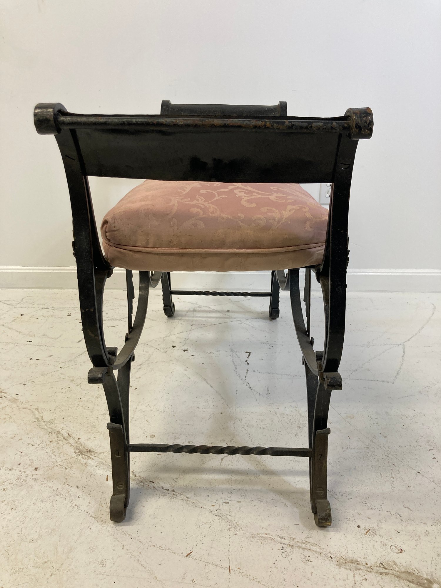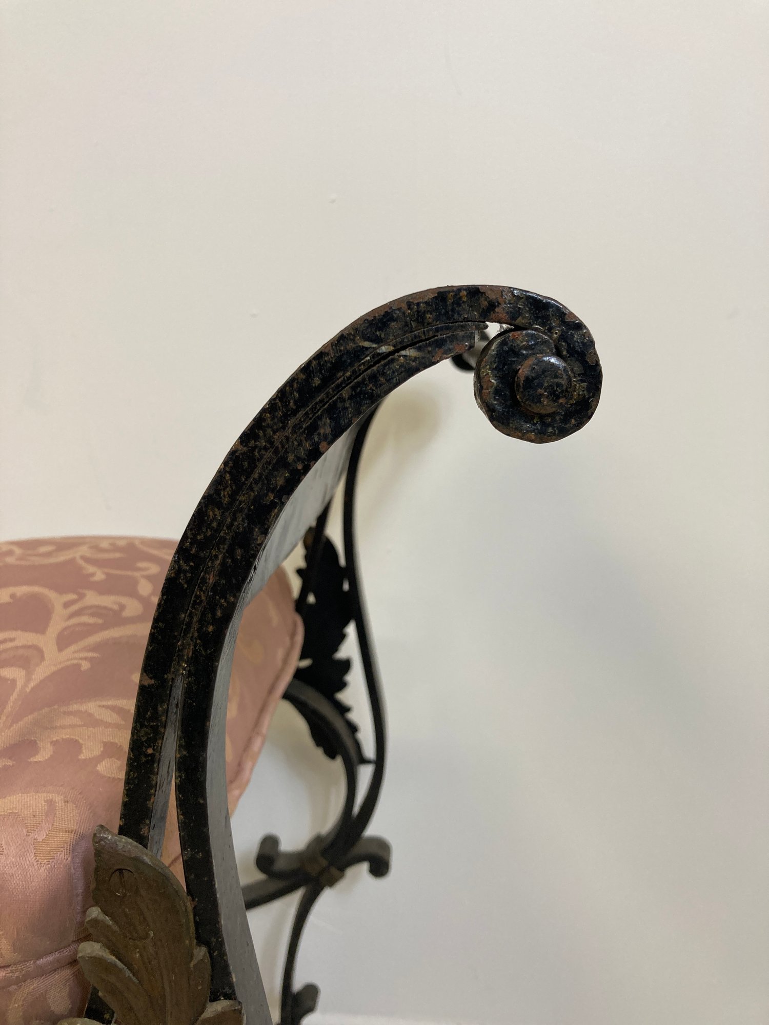 Selling a antique French wrought iron bench with brass accents. Circa late 19th-early 20th century.