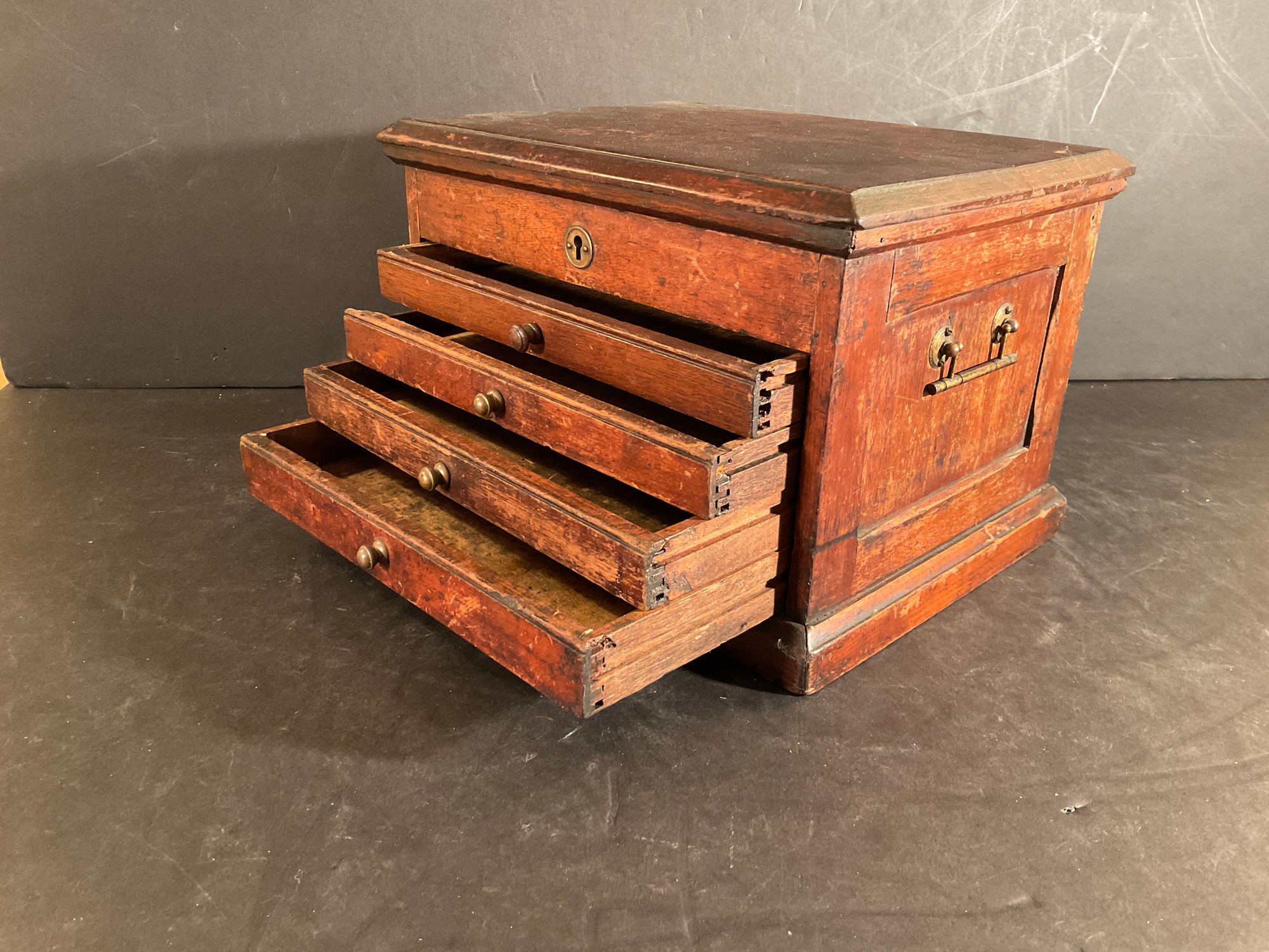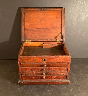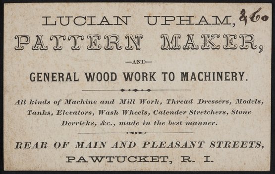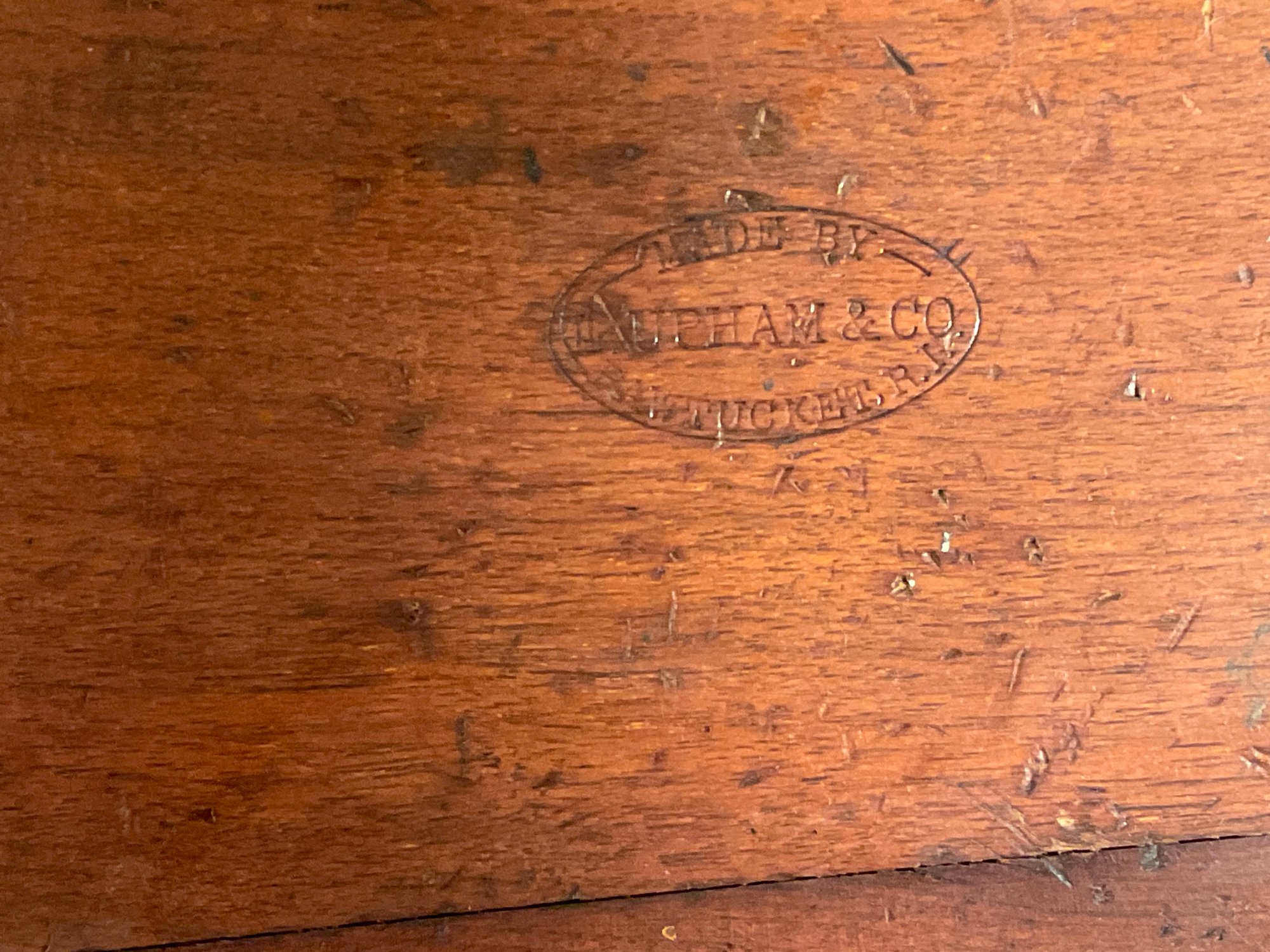 Lucian Upham & Co. Signed on the inside of the lid. We have included an original calling card from the Internet. We found that shows exactly where they were located in Pawtucket Rhode Island. Nice piece of history.