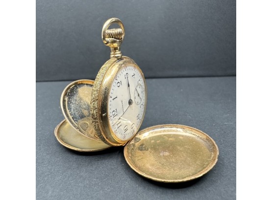 A fine antique Waltham pocket watch with 14k gold engraved case. Marked inside AWWCO Waltham, Mass, 15 jewels. #17908160. Also marked on case Dubois W.C. Co. 14K.